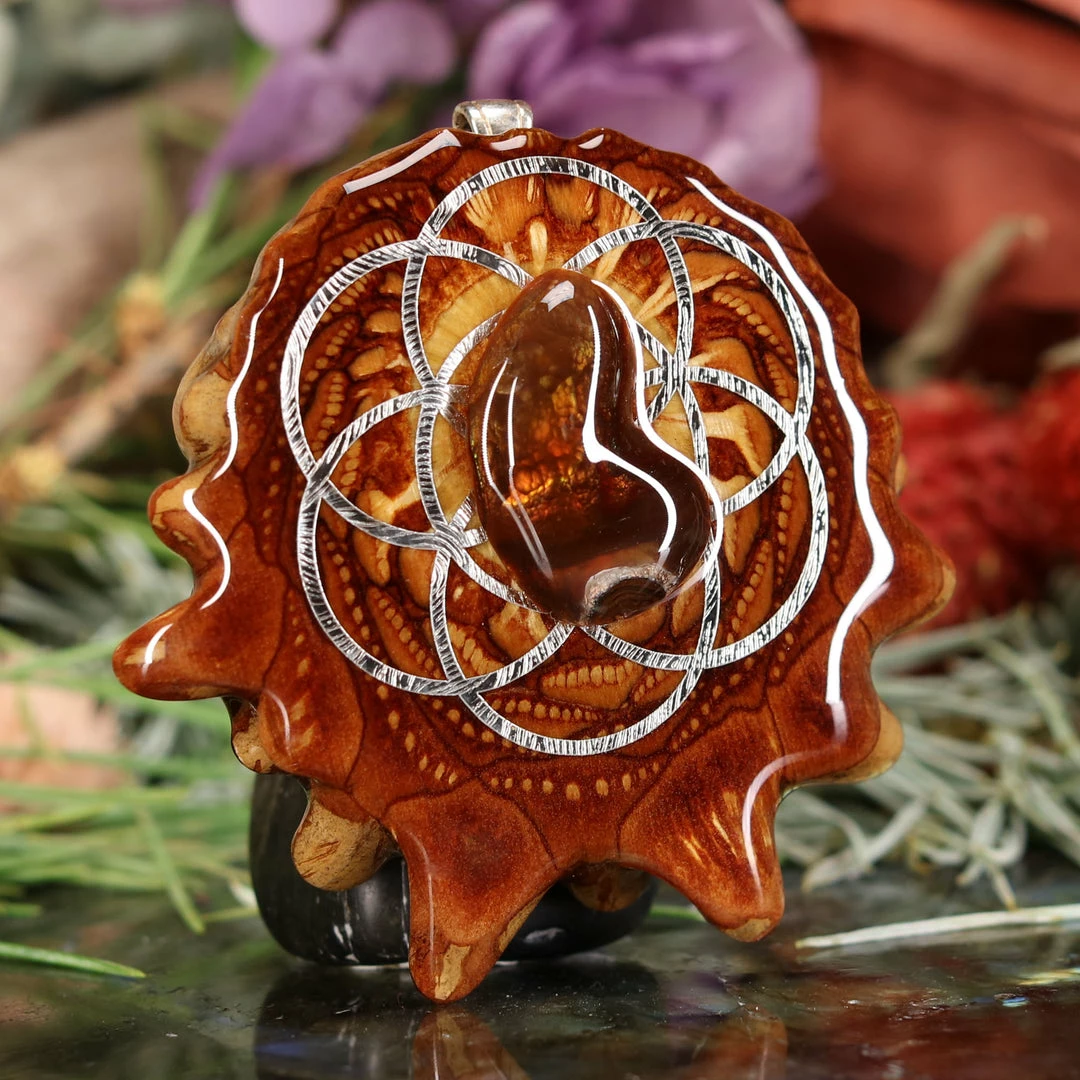 Every pinecone pendant is an elegant gift from Mother Nature — unveiling the ornate Sacred Geometry hidden at the center of one of the world’s densest Pinecones. Because only one cross-section is taken from the “heart” of each Cone, every pendant is absolutely unique, and truly one-of-a-kind.
