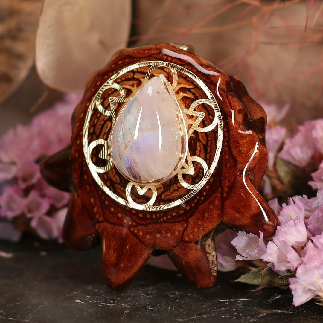 As its name suggests, Moonstone is strongly connected to the archetypal feminine energies of the moon, intuition, and empathy. It allows us to reconnect with the softness of the feminine, facilitating the letting go of stress, fixation, and aggression. Additionally, Moonstone is recognized as a powerful tool to make conscious what is unconscious, bringing ease to practices of mindfulness and higher consciousnesses.