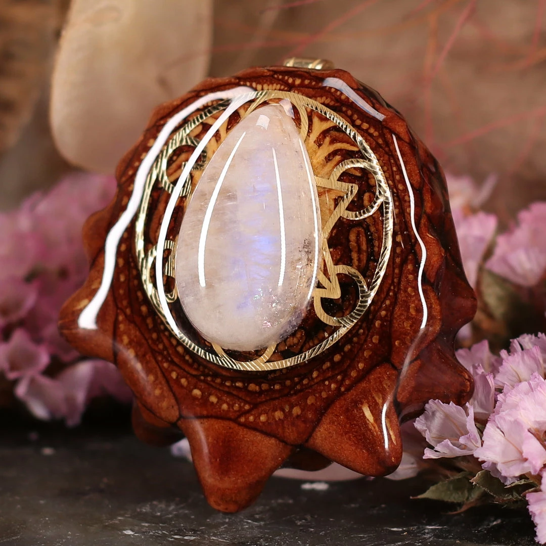 As its name suggests, Moonstone is strongly connected to the archetypal feminine energies of the moon, intuition, and empathy. It allows us to reconnect with the softness of the feminine, facilitating the letting go of stress, fixation, and aggression. Additionally, Moonstone is recognized as a powerful tool to make conscious what is unconscious, bringing ease to practices of mindfulness and higher consciousnesses.