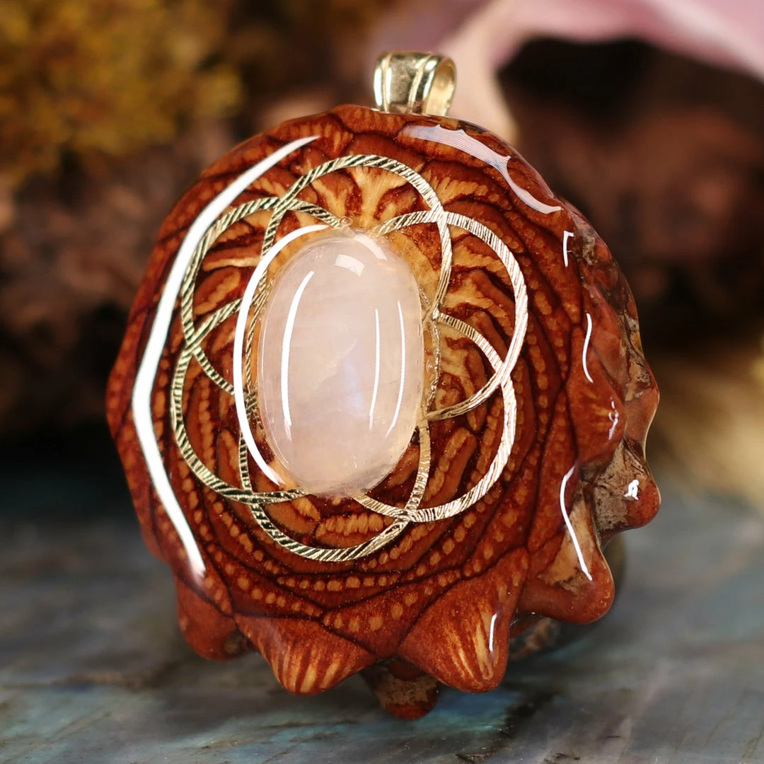 Every pinecone pendant is an elegant gift from Mother Nature — unveiling the ornate Sacred Geometry hidden at the center of one of the world’s densest Pinecones. Because only one cross-section is taken from the “heart” of each Cone, every pendant is absolutely unique, and truly one-of-a-kind.