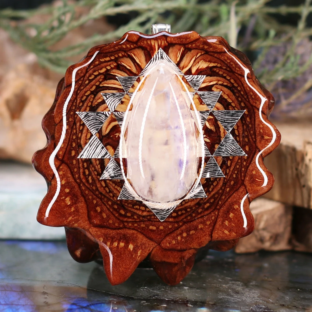 Every pinecone pendant is an elegant gift from Mother Nature — unveiling the ornate Sacred Geometry hidden at the center of one of the world’s densest Pinecones. Because only one cross-section is taken from the “heart” of each Cone, every pendant is absolutely unique, and truly one-of-a-kind.