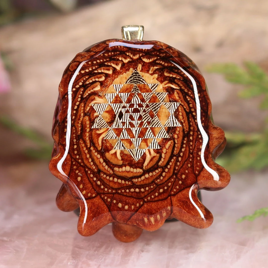 Every pinecone pendant is an elegant gift from Mother Nature — unveiling the ornate Sacred Geometry hidden at the center of one of the world’s densest Pinecones. Because only one cross-section is taken from the “heart” of each Cone, every pendant is absolutely unique, and truly one-of-a-kind.
