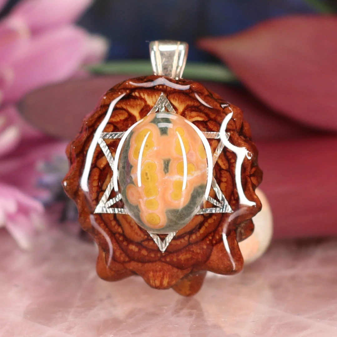 Every pinecone pendant is an elegant gift from Mother Nature — unveiling the ornate Sacred Geometry hidden at the center of one of the world’s densest Pinecones. Because only one cross-section is taken from the “heart” of each Cone, every pendant is absolutely unique, and truly one-of-a-kind.