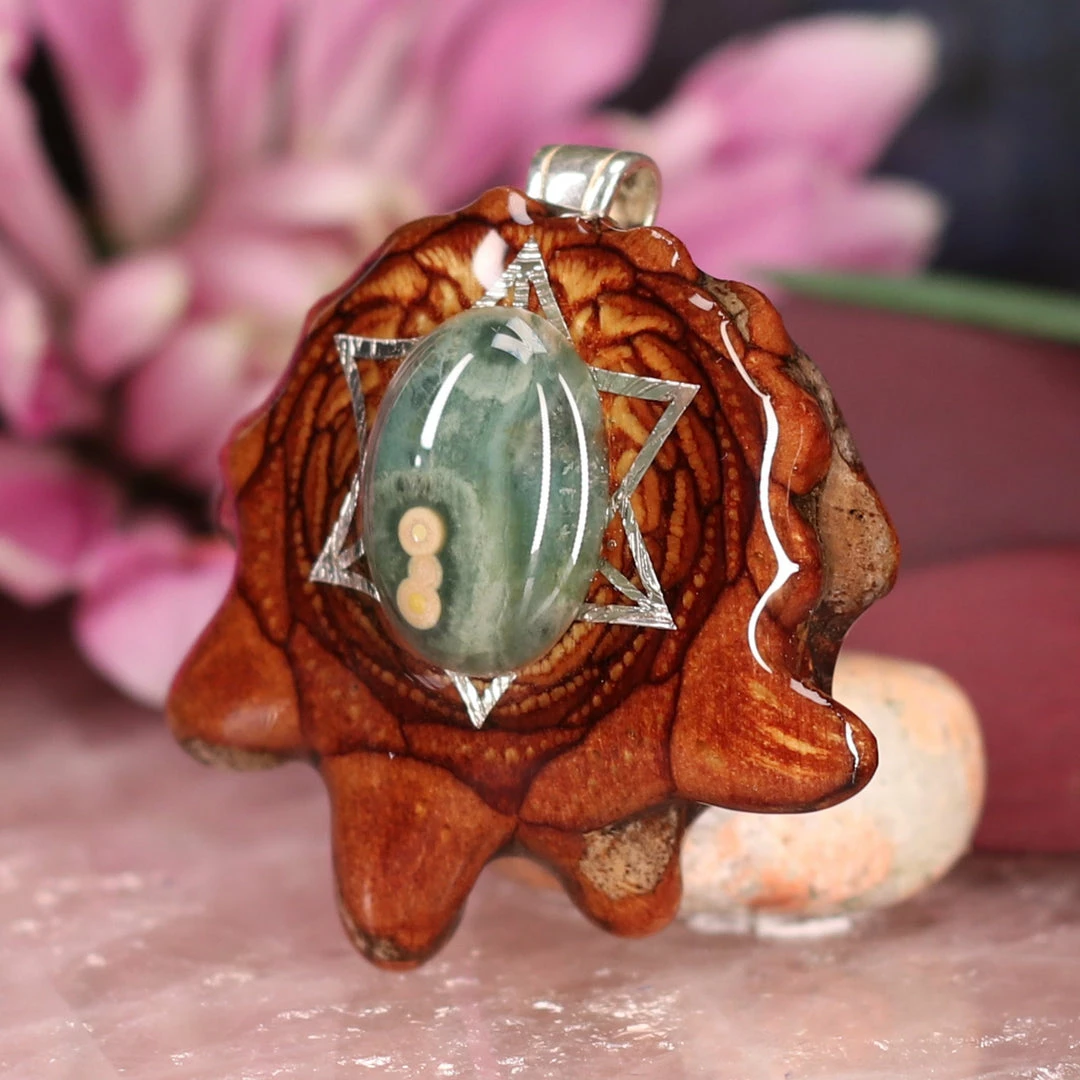 Every pinecone pendant is an elegant gift from Mother Nature — unveiling the ornate Sacred Geometry hidden at the center of one of the world’s densest Pinecones. Because only one cross-section is taken from the “heart” of each Cone, every pendant is absolutely unique, and truly one-of-a-kind.