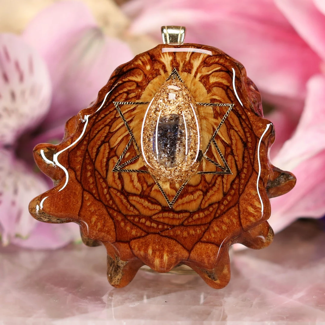 Every pinecone pendant is an elegant gift from Mother Nature — unveiling the ornate Sacred Geometry hidden at the center of one of the world’s densest Pinecones. Because only one cross-section is taken from the “heart” of each Cone, every pendant is absolutely unique, and truly one-of-a-kind.