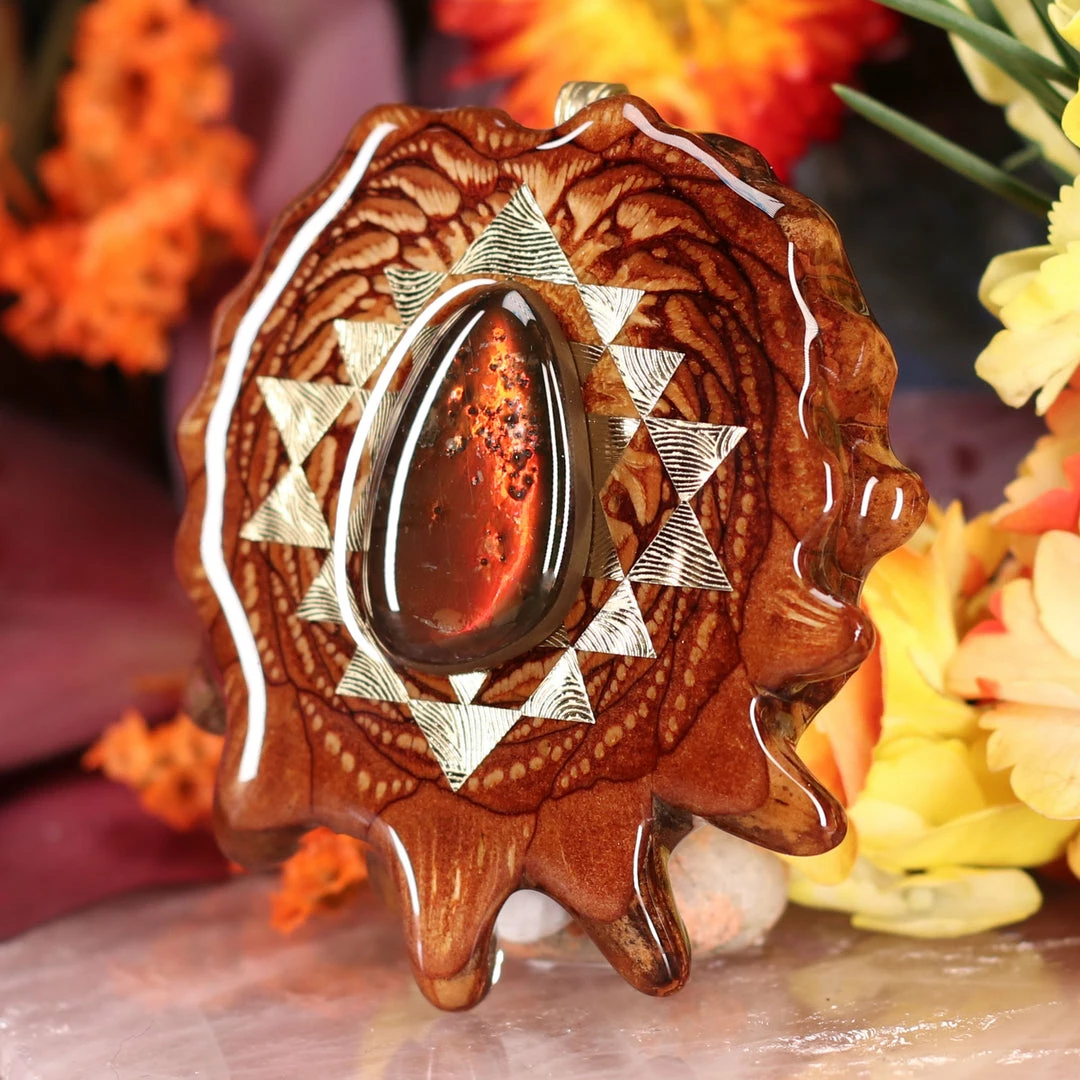 Every pinecone pendant is an elegant gift from Mother Nature — unveiling the ornate Sacred Geometry hidden at the center of one of the world’s densest Pinecones. Because only one cross-section is taken from the “heart” of each Cone, every pendant is absolutely unique, and truly one-of-a-kind.