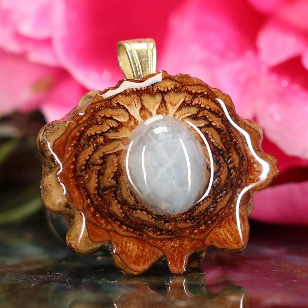 Every pinecone pendant is an elegant gift from Mother Nature — unveiling the ornate Sacred Geometry hidden at the center of one of the world’s densest Pinecones. Because only one cross-section is taken from the “heart” of each Cone, every pendant is absolutely unique, and truly one-of-a-kind.