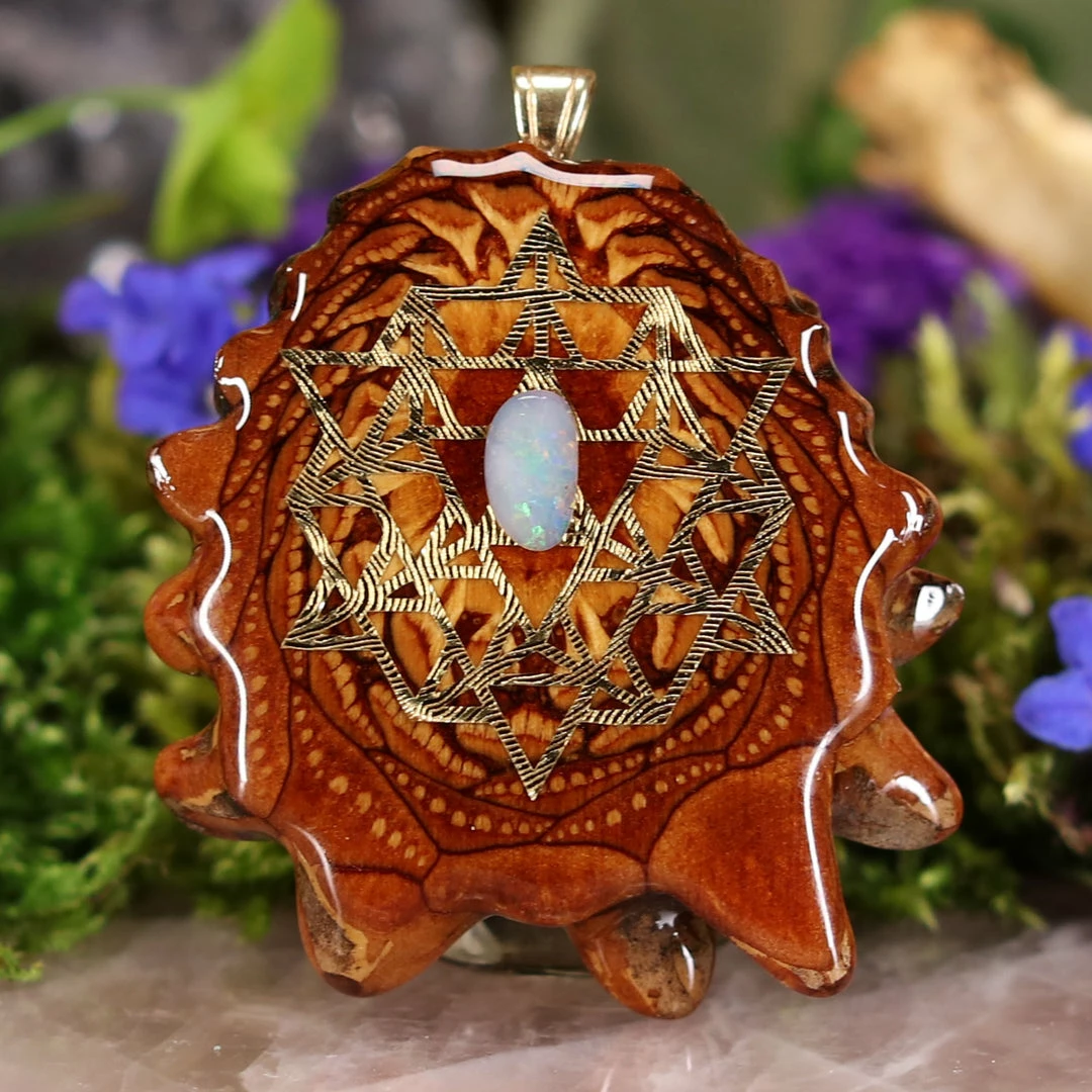Every pinecone pendant is an elegant gift from Mother Nature — unveiling the ornate Sacred Geometry hidden at the center of one of the world’s densest Pinecones. Because only one cross-section is taken from the “heart” of each Cone, every pendant is absolutely unique, and truly one-of-a-kind.