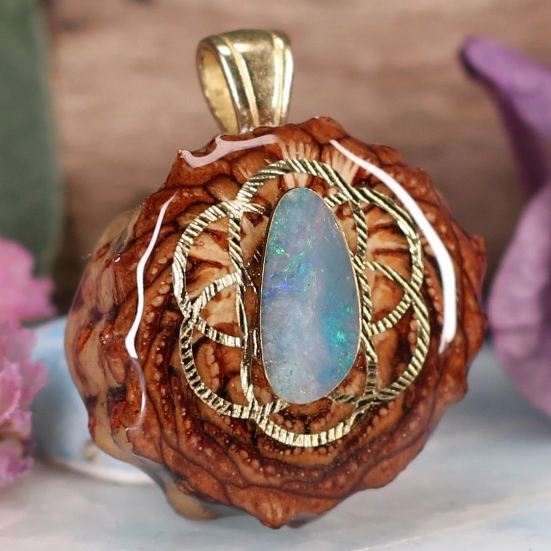 Every pinecone pendant is an elegant gift from Mother Nature — unveiling the ornate Sacred Geometry hidden at the center of one of the world’s densest Pinecones. Because only one cross-section is taken from the “heart” of each Cone, every pendant is absolutely unique, and truly one-of-a-kind.