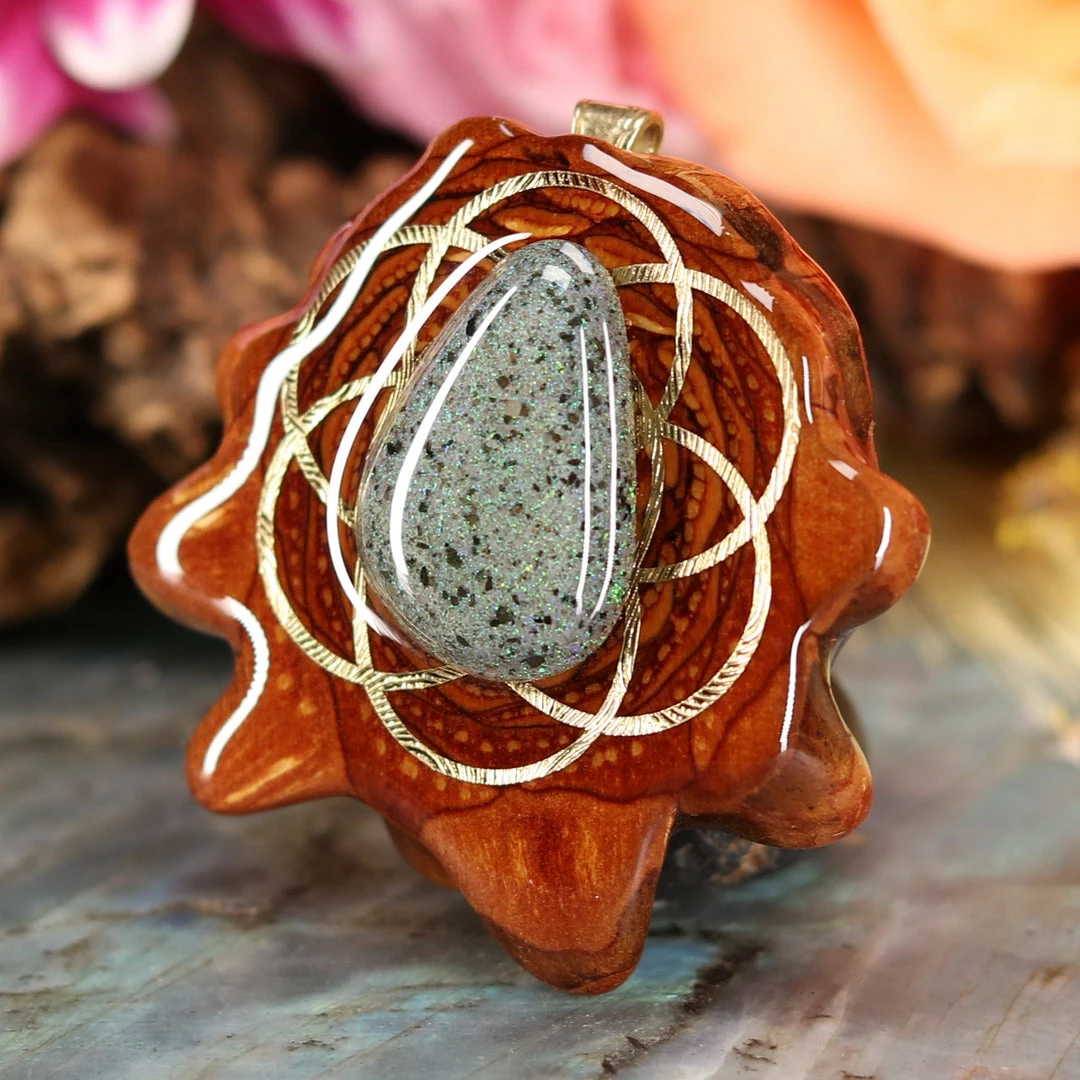 Every pinecone pendant is an elegant gift from Mother Nature — unveiling the ornate Sacred Geometry hidden at the center of one of the world’s densest Pinecones. Because only one cross-section is taken from the “heart” of each Cone, every pendant is absolutely unique, and truly one-of-a-kind.
