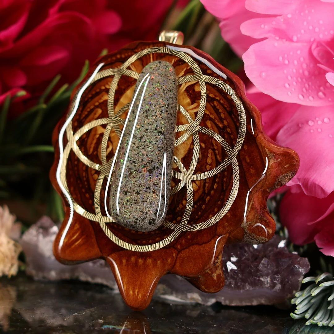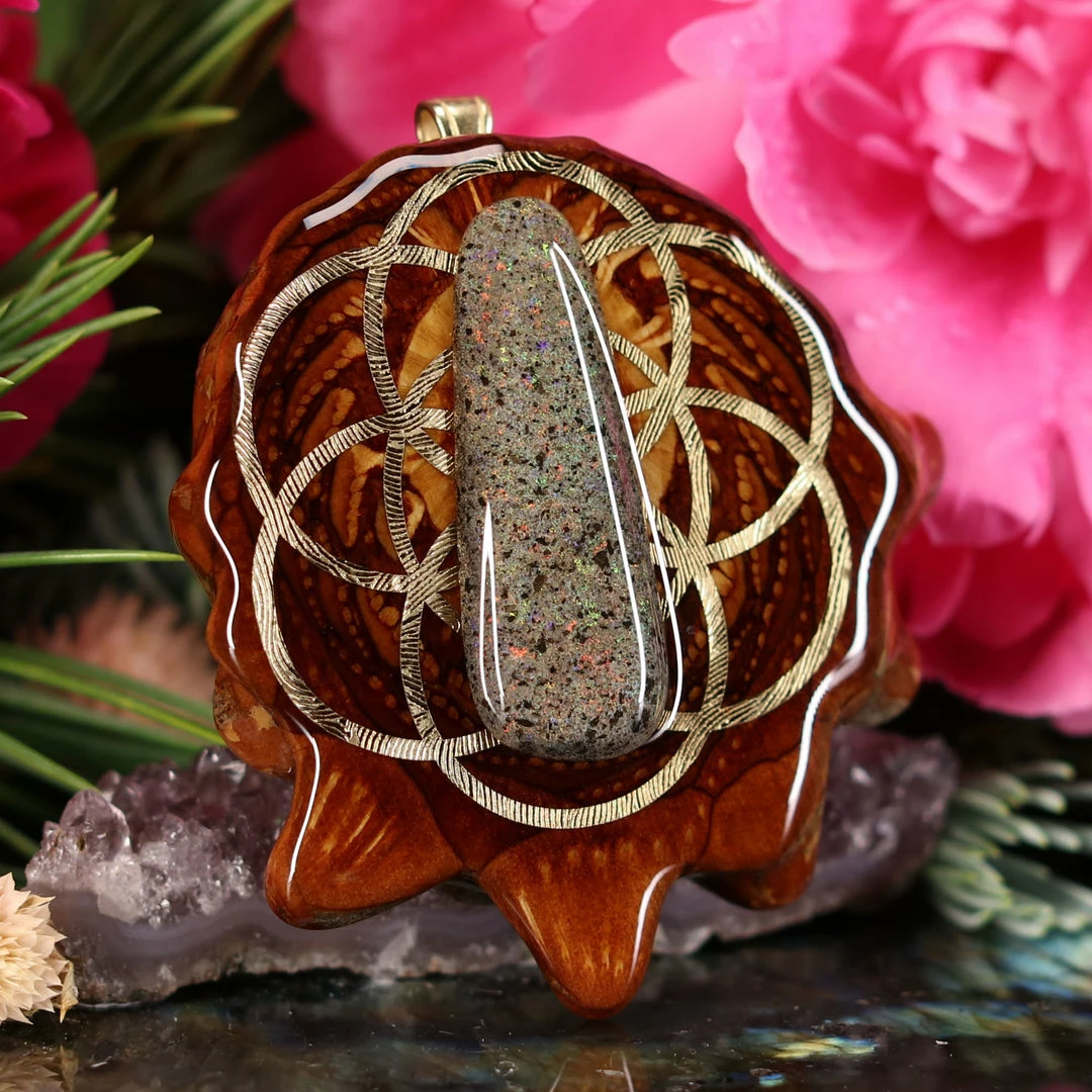 Every pinecone pendant is an elegant gift from Mother Nature — unveiling the ornate Sacred Geometry hidden at the center of one of the world’s densest Pinecones. Because only one cross-section is taken from the “heart” of each Cone, every pendant is absolutely unique, and truly one-of-a-kind.