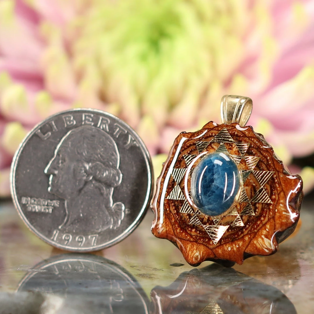 TEP Pendants Blue Apatite With Gold Sri Yantra