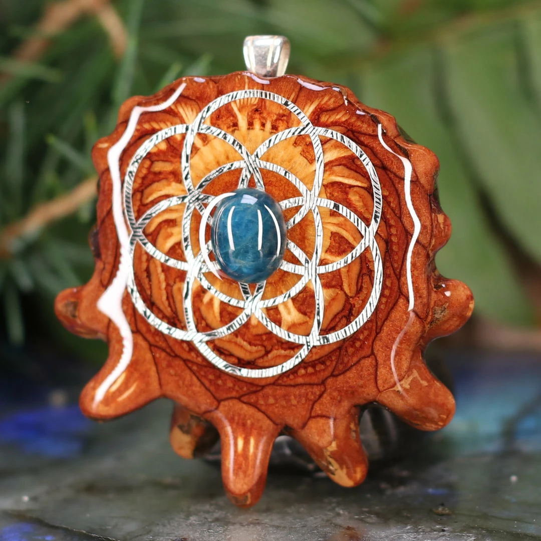 Every pinecone pendant is an elegant gift from Mother Nature — unveiling the ornate Sacred Geometry hidden at the center of one of the world’s densest Pinecones. Because only one cross-section is taken from the “heart” of each Cone, every pendant is absolutely unique, and truly one-of-a-kind.