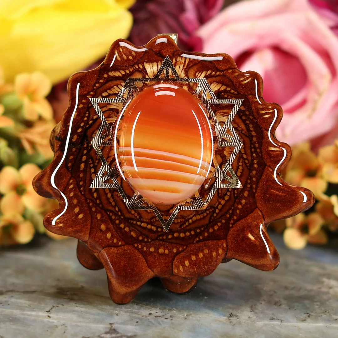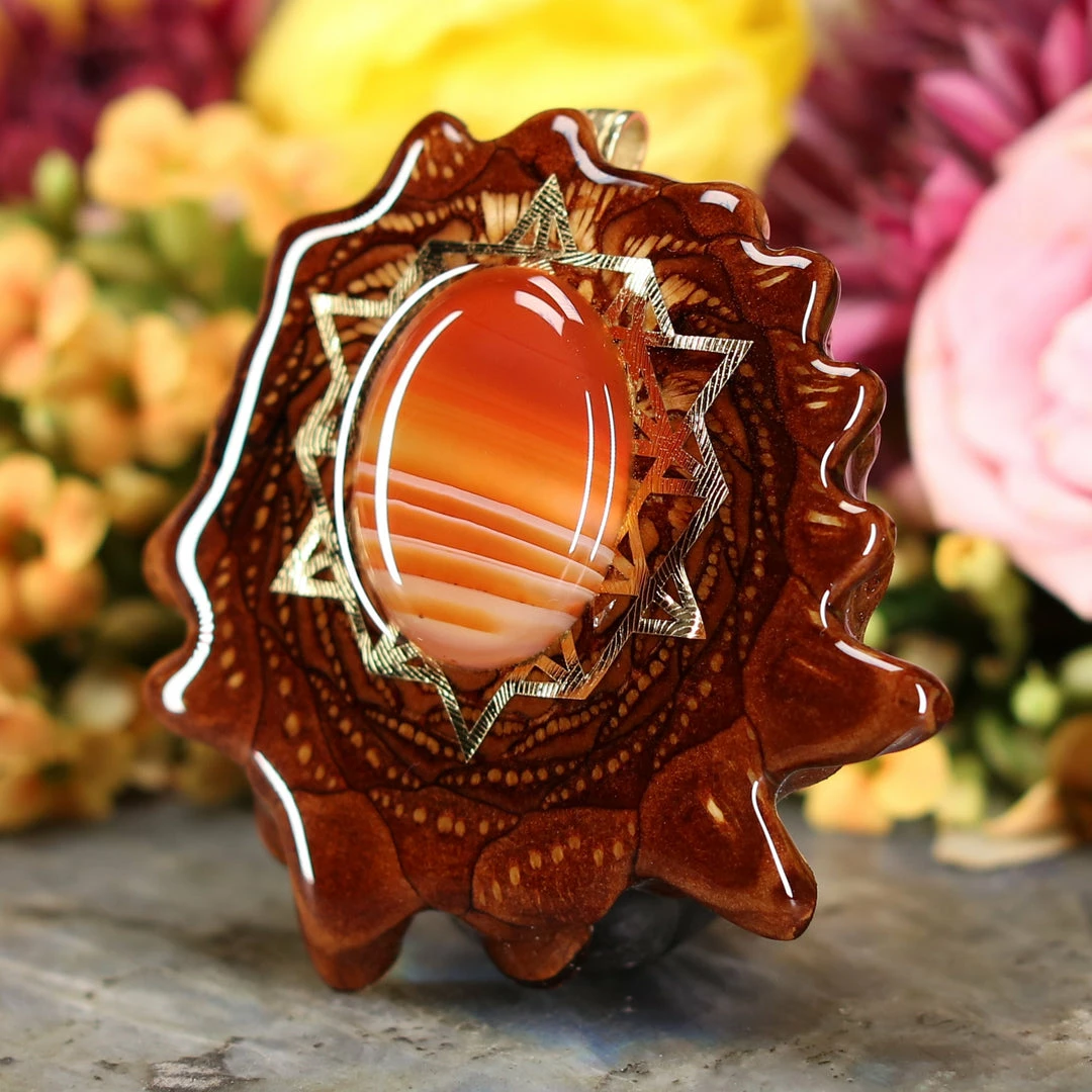 TEP Pendants Carnelian With Gold 64 Star Tetrahedron
