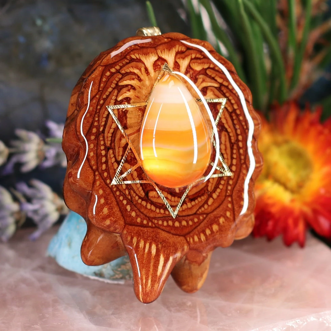 Every pinecone pendant is an elegant gift from Mother Nature — unveiling the ornate Sacred Geometry hidden at the center of one of the world’s densest Pinecones. Because only one cross-section is taken from the “heart” of each Cone, every pendant is absolutely unique, and truly one-of-a-kind.