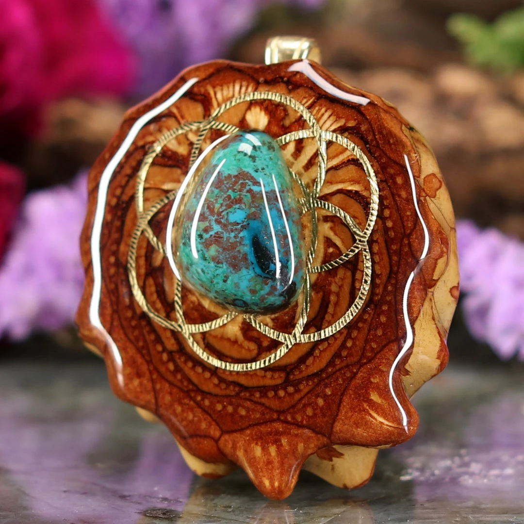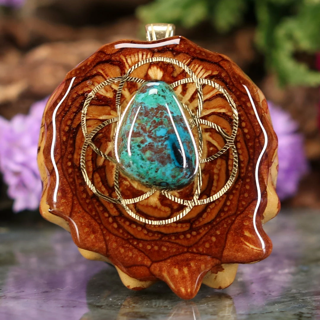 Every pinecone pendant is an elegant gift from Mother Nature — unveiling the ornate Sacred Geometry hidden at the center of one of the world’s densest Pinecones. Because only one cross-section is taken from the “heart” of each Cone, every pendant is absolutely unique, and truly one-of-a-kind.