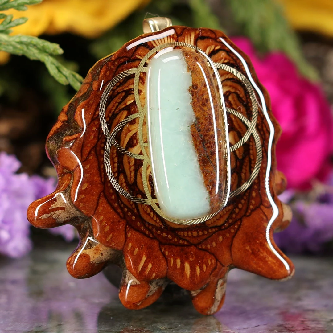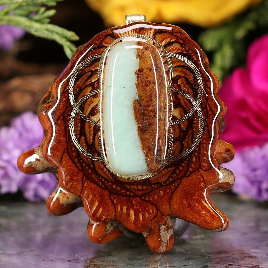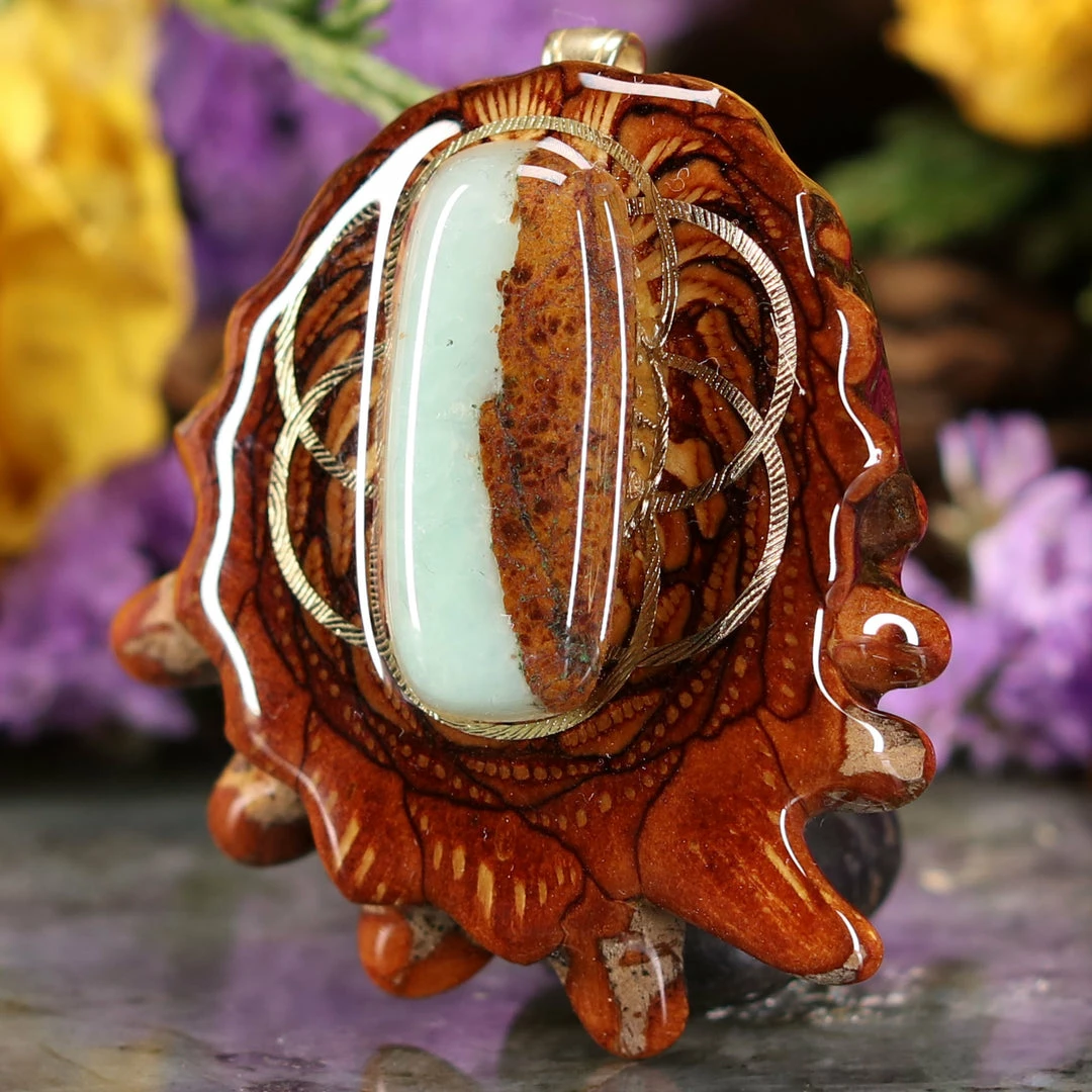 Every pinecone pendant is an elegant gift from Mother Nature — unveiling the ornate Sacred Geometry hidden at the center of one of the world’s densest Pinecones. Because only one cross-section is taken from the “heart” of each Cone, every pendant is absolutely unique, and truly one-of-a-kind.