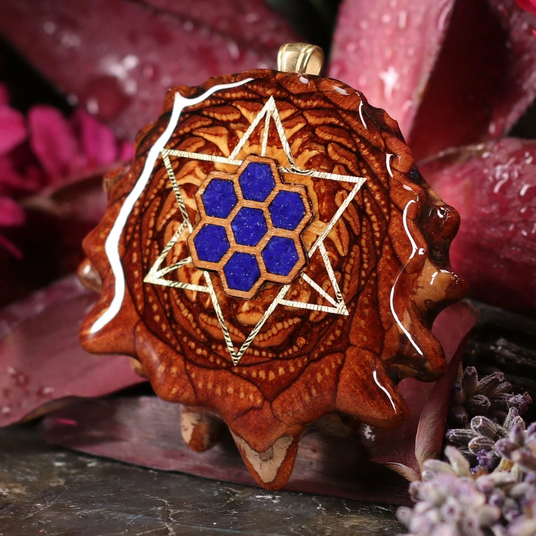 Every pinecone pendant is an elegant gift from Mother Nature — unveiling the ornate Sacred Geometry hidden at the center of one of the world’s densest Pinecones. Because only one cross-section is taken from the “heart” of each Cone, every pendant is absolutely unique, and truly one-of-a-kind.