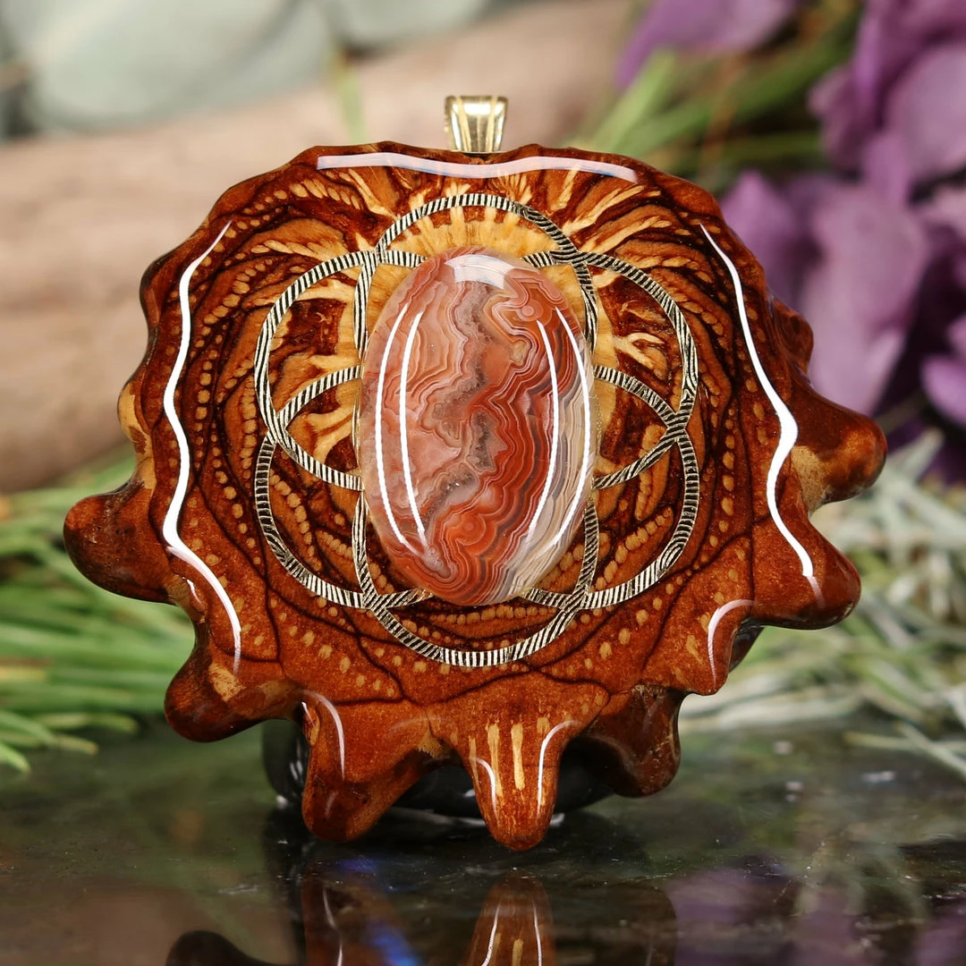 Every pinecone pendant is an elegant gift from Mother Nature — unveiling the ornate Sacred Geometry hidden at the center of one of the world’s densest Pinecones. Because only one cross-section is taken from the “heart” of each Cone, every pendant is absolutely unique, and truly one-of-a-kind.