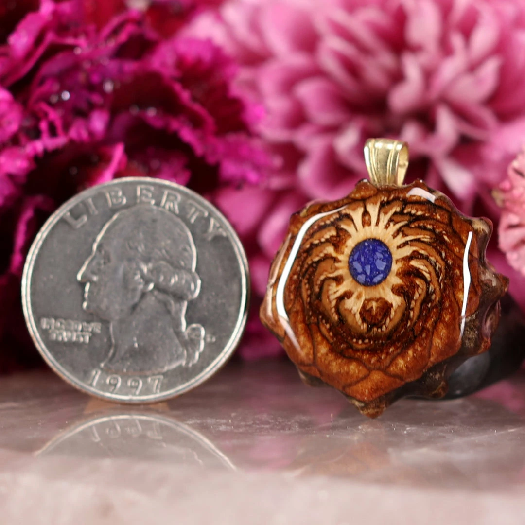 Every pinecone pendant is an elegant gift from Mother Nature — unveiling the ornate Sacred Geometry hidden at the center of one of the world’s densest Pinecones. Because only one cross-section is taken from the “heart” of each Cone, every pendant is absolutely unique, and truly one-of-a-kind.