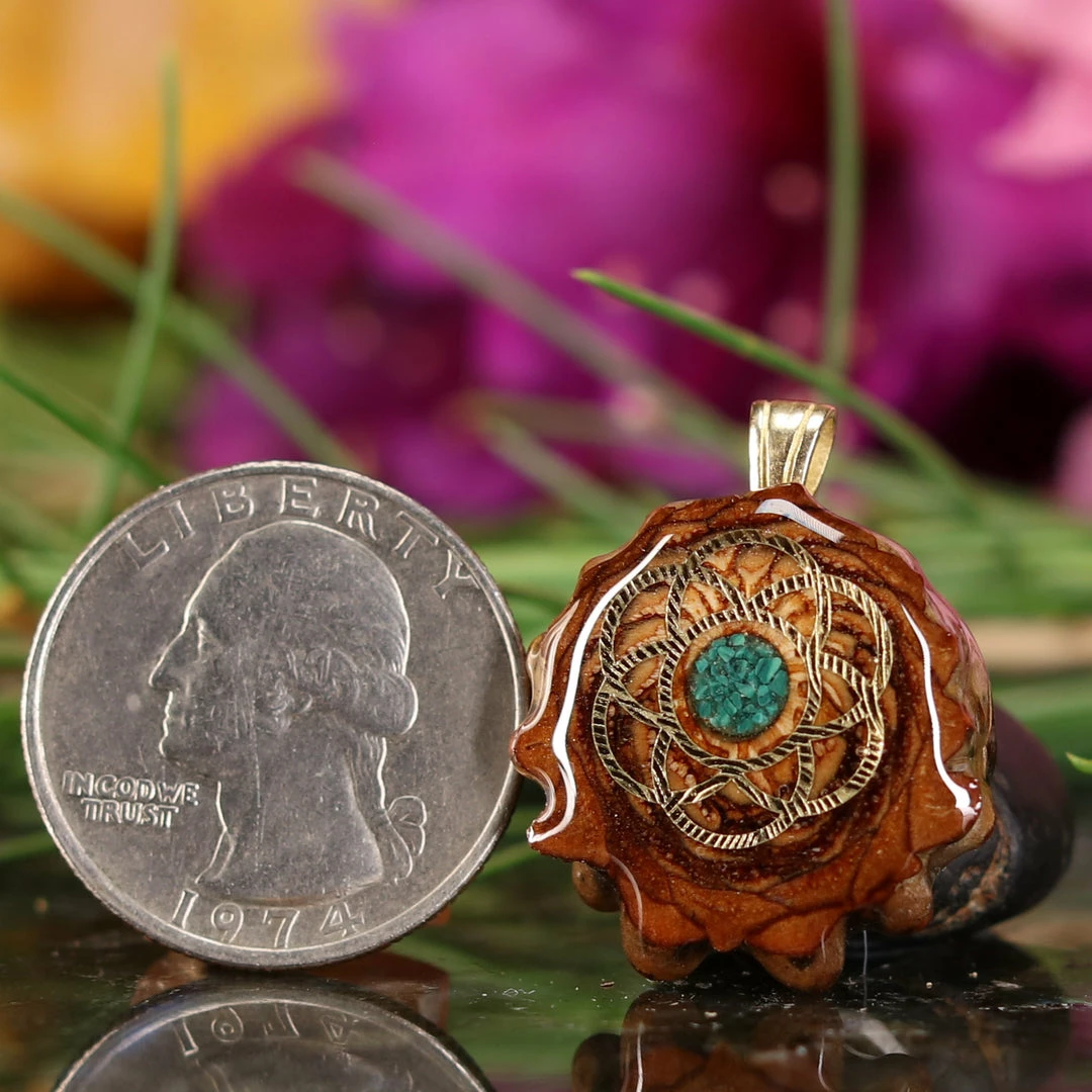 TEP Pendants Crushed Malachite (Glows) With Gold Seed Of Life