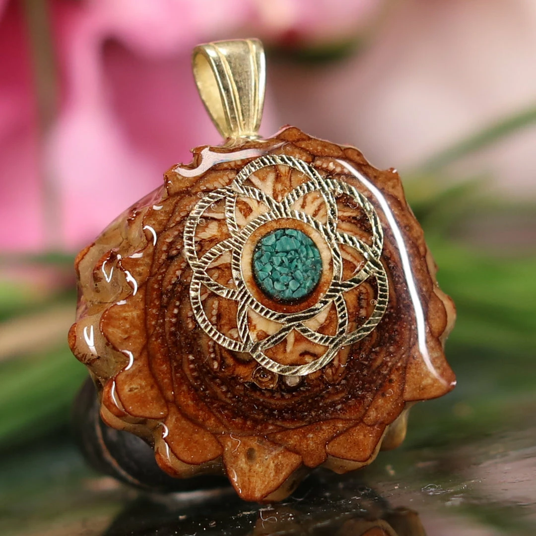 Every pinecone pendant is an elegant gift from Mother Nature — unveiling the ornate Sacred Geometry hidden at the center of one of the world’s densest Pinecones. Because only one cross-section is taken from the “heart” of each Cone, every pendant is absolutely unique, and truly one-of-a-kind.