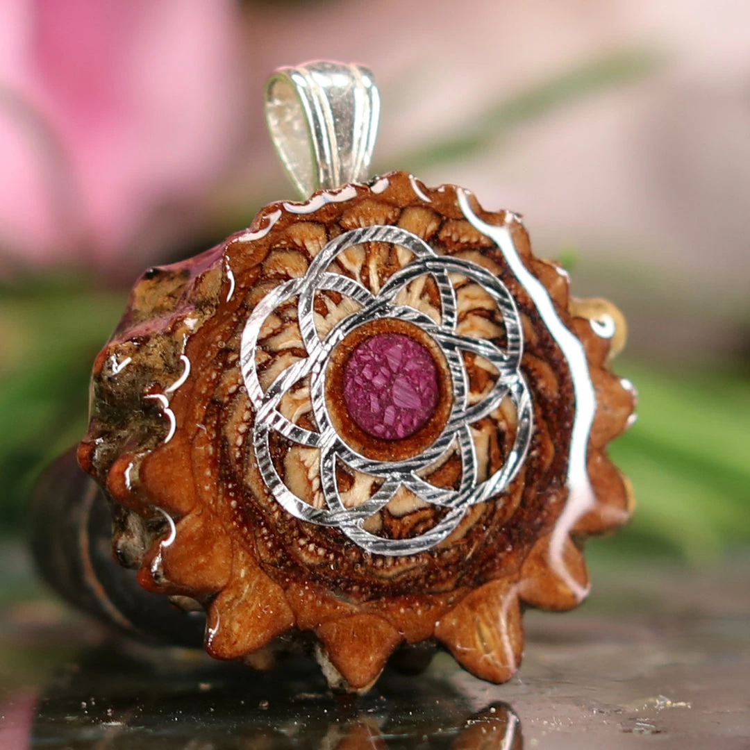 TEP Pendants Crushed Sugilite (Glows) With Silver Seed Of Life
