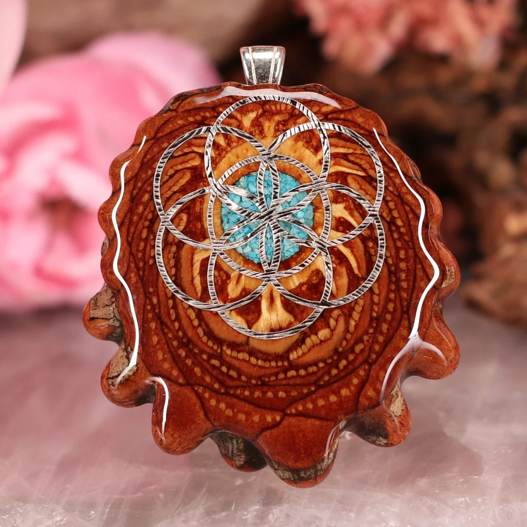 Every pinecone pendant is an elegant gift from Mother Nature — unveiling the ornate Sacred Geometry hidden at the center of one of the world’s densest Pinecones. Because only one cross-section is taken from the “heart” of each Cone, every pendant is absolutely unique, and truly one-of-a-kind.