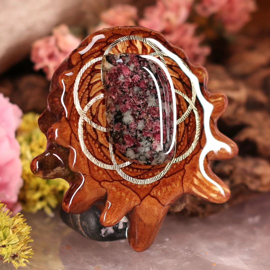 Derived from the Greek word for “Easy”, Eudialyte is said to facilitate greater spiritual integration by enhancing the connection between the physical and emotional bodies. With greater union between the body and mind, we can gain a deeper awareness of the physical manifestations of our emotions, helping develop our emotional fortitude and allowing us to gain clarity and see the ways in which we can evolve. This stone is also believed to help develop trust in oneself and others, easing compulsive behavior, dispelling jealousy, and bringing harmony to the heart chakra.