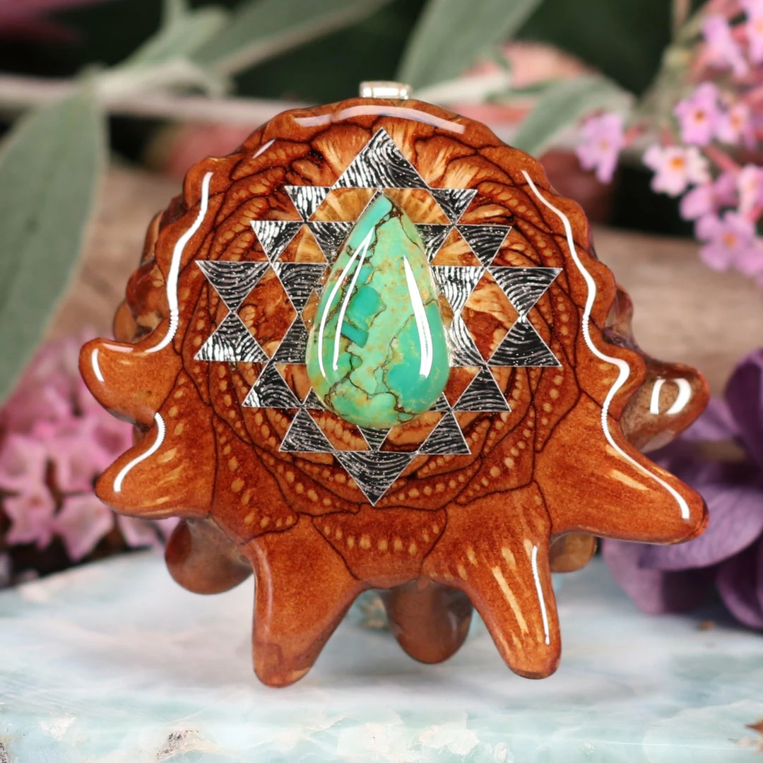 Every pinecone pendant is an elegant gift from Mother Nature — unveiling the ornate Sacred Geometry hidden at the center of one of the world’s densest Pinecones. Because only one cross-section is taken from the “heart” of each Cone, every pendant is absolutely unique, and truly one-of-a-kind.