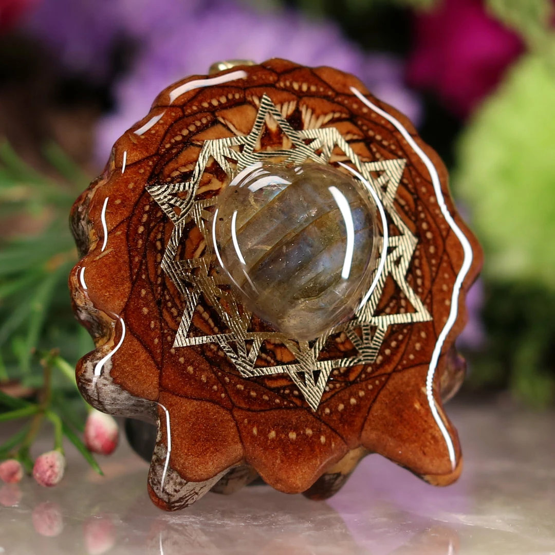 Every pinecone pendant is an elegant gift from Mother Nature — unveiling the ornate Sacred Geometry hidden at the center of one of the world’s densest Pinecones. Because only one cross-section is taken from the “heart” of each Cone, every pendant is absolutely unique, and truly one-of-a-kind.