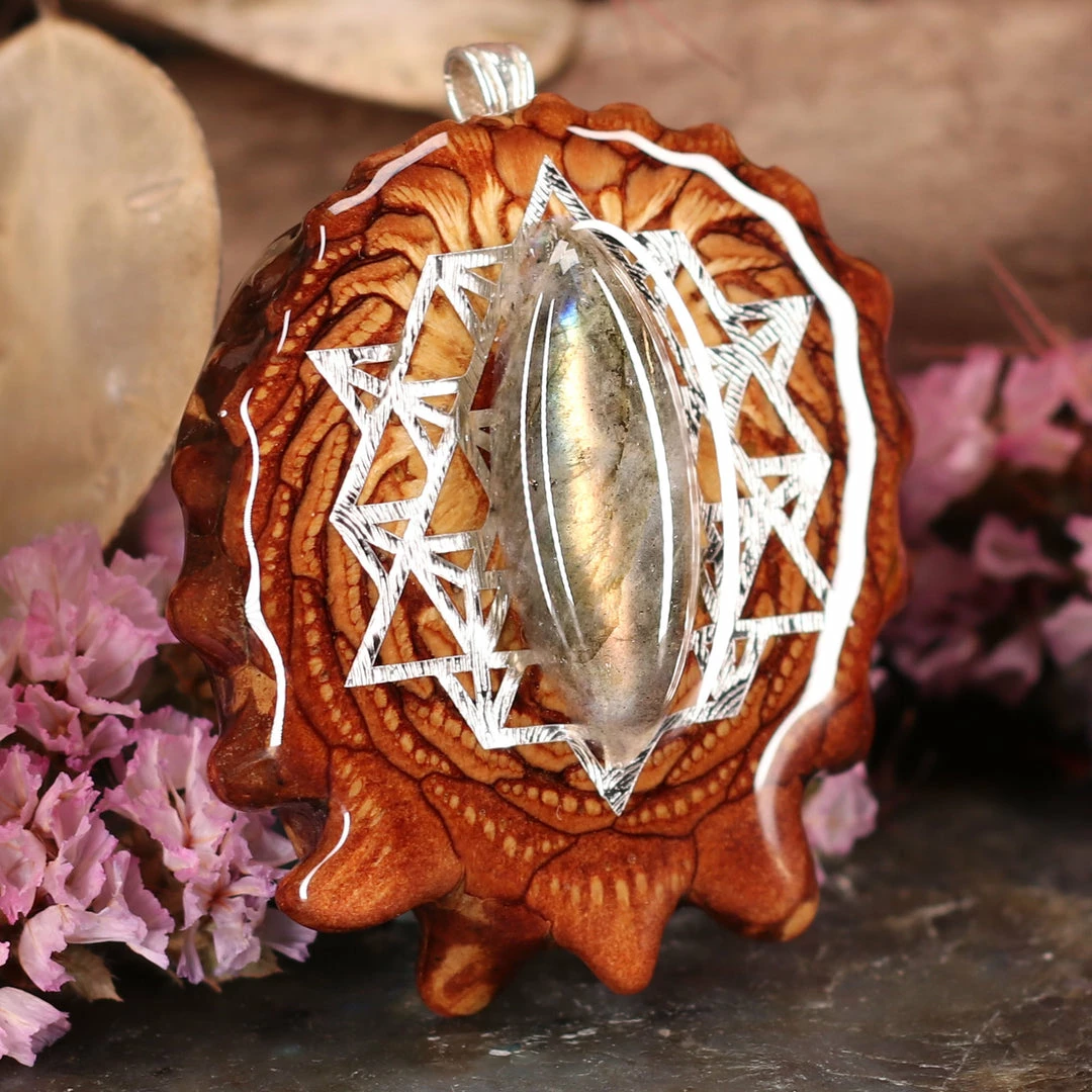 Every pinecone pendant is an elegant gift from Mother Nature — unveiling the ornate Sacred Geometry hidden at the center of one of the world’s densest Pinecones. Because only one cross-section is taken from the “heart” of each Cone, every pendant is absolutely unique, and truly one-of-a-kind.