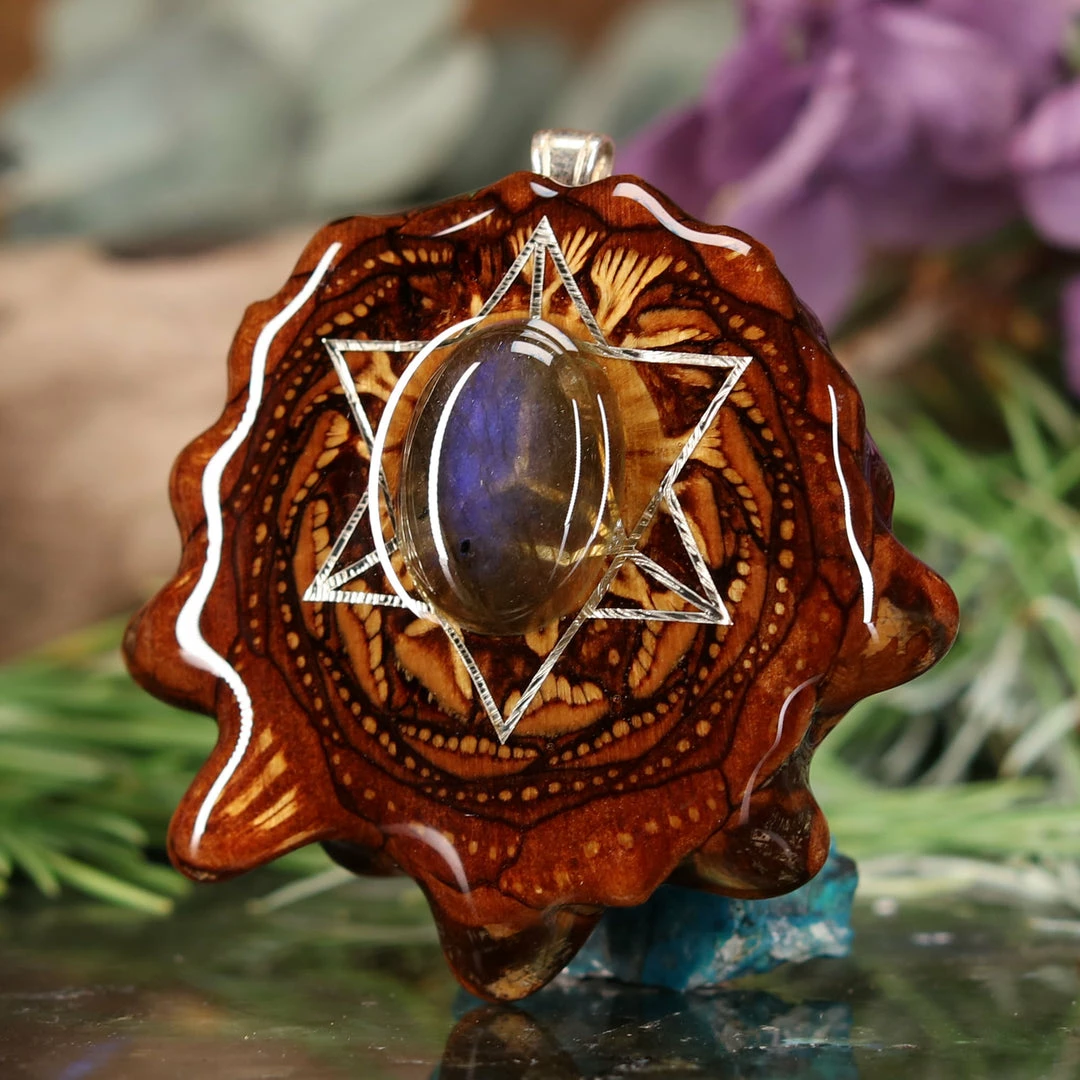 Every pinecone pendant is an elegant gift from Mother Nature — unveiling the ornate Sacred Geometry hidden at the center of one of the world’s densest Pinecones. Because only one cross-section is taken from the “heart” of each Cone, every pendant is absolutely unique, and truly one-of-a-kind.