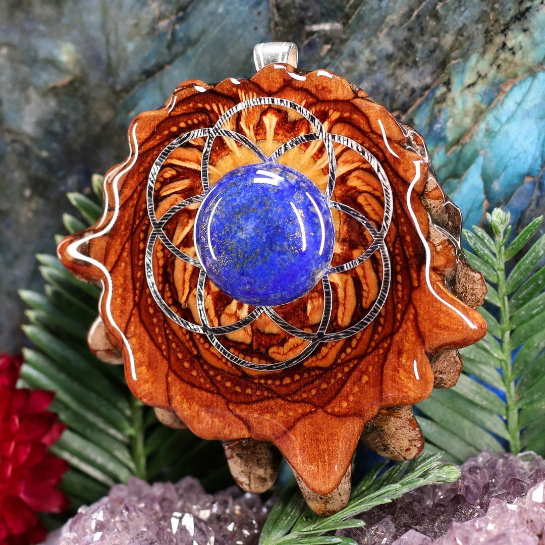 Every pinecone pendant is an elegant gift from Mother Nature — unveiling the ornate Sacred Geometry hidden at the center of one of the world’s densest Pinecones. Because only one cross-section is taken from the “heart” of each Cone, every pendant is absolutely unique, and truly one-of-a-kind.