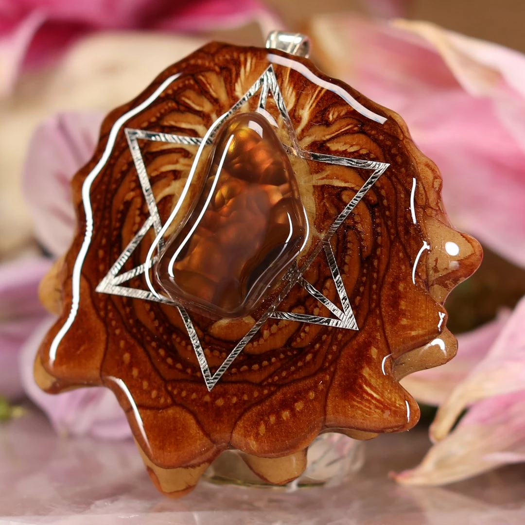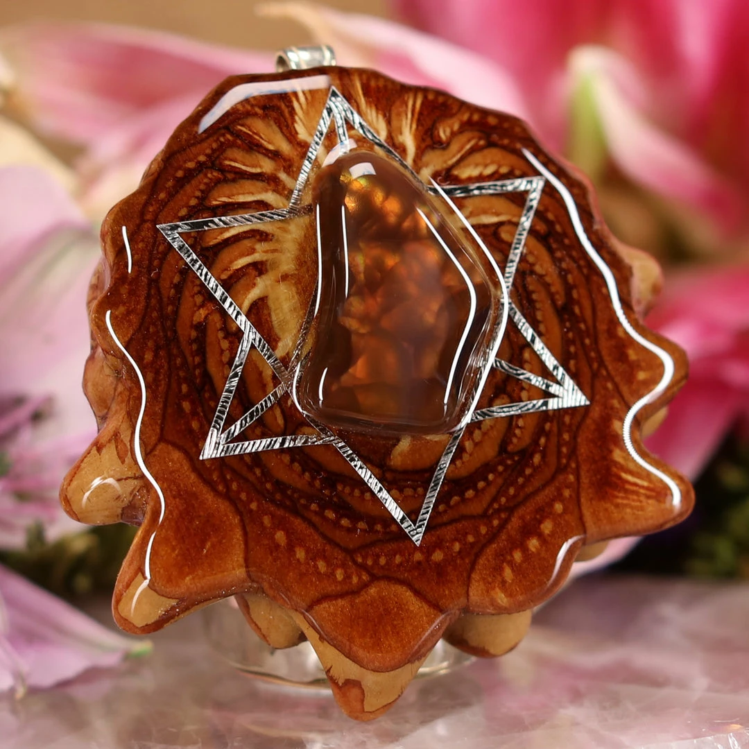 Every pinecone pendant is an elegant gift from Mother Nature — unveiling the ornate Sacred Geometry hidden at the center of one of the world’s densest Pinecones. Because only one cross-section is taken from the “heart” of each Cone, every pendant is absolutely unique, and truly one-of-a-kind.