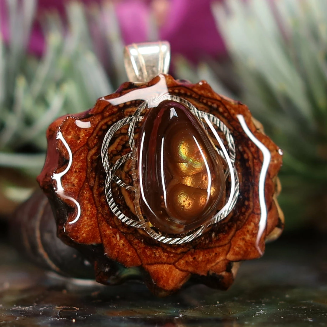 Every pinecone pendant is an elegant gift from Mother Nature — unveiling the ornate Sacred Geometry hidden at the center of one of the world’s densest Pinecones. Because only one cross-section is taken from the “heart” of each Cone, every pendant is absolutely unique, and truly one-of-a-kind.