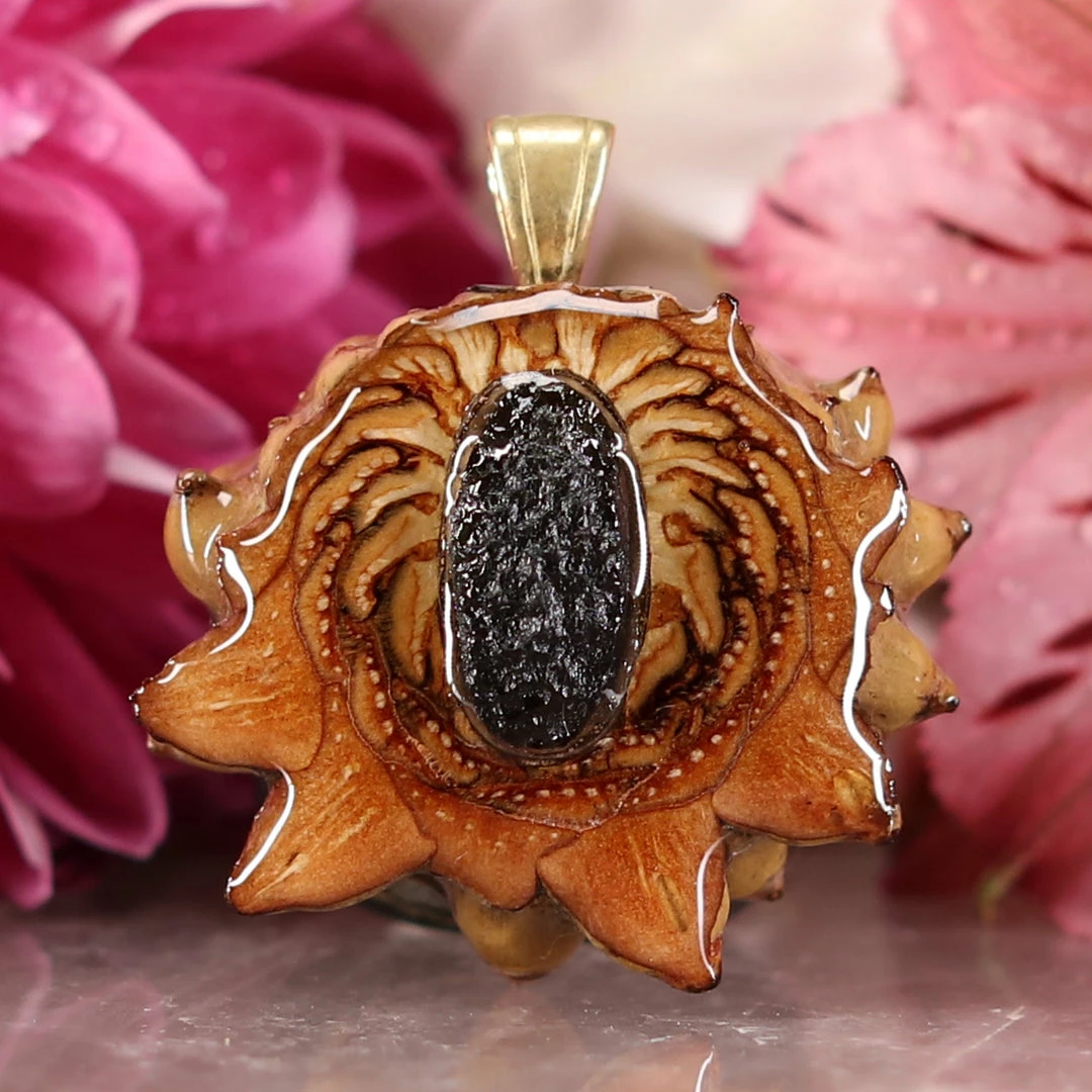 Every pinecone pendant is an elegant gift from Mother Nature — unveiling the ornate Sacred Geometry hidden at the center of one of the world’s densest Pinecones. Because only one cross-section is taken from the “heart” of each Cone, every pendant is absolutely unique, and truly one-of-a-kind.
