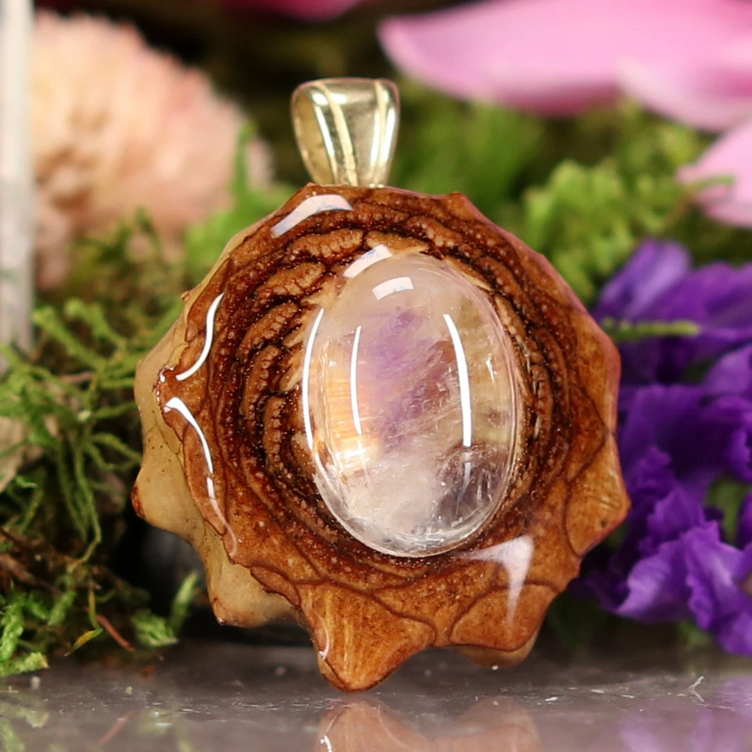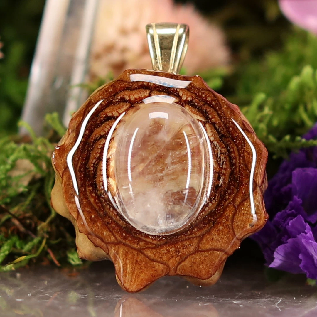 Every pinecone pendant is an elegant gift from Mother Nature — unveiling the ornate Sacred Geometry hidden at the center of one of the world’s densest Pinecones. Because only one cross-section is taken from the “heart” of each Cone, every pendant is absolutely unique, and truly one-of-a-kind.