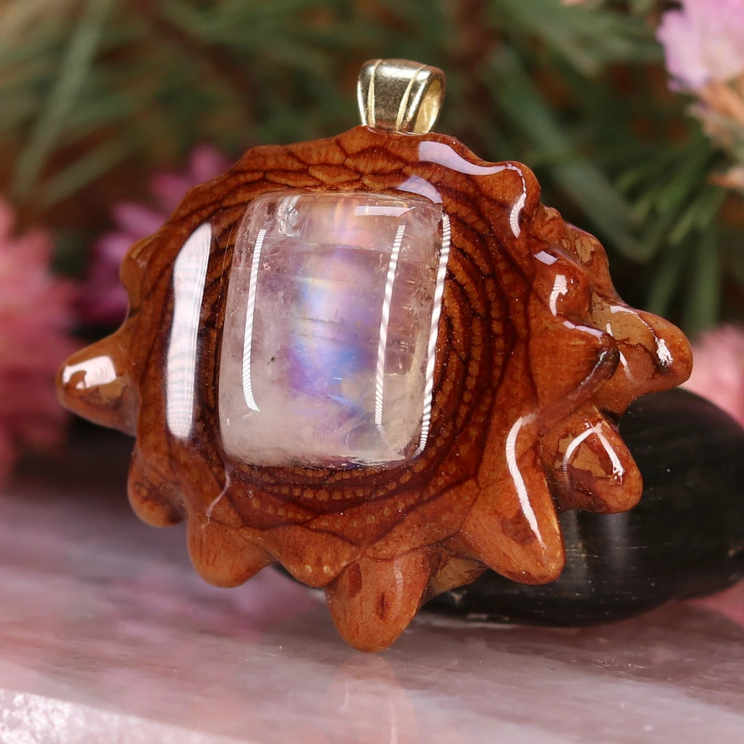 Every pinecone pendant is an elegant gift from Mother Nature — unveiling the ornate Sacred Geometry hidden at the center of one of the world’s densest Pinecones. Because only one cross-section is taken from the “heart” of each Cone, every pendant is absolutely unique, and truly one-of-a-kind.