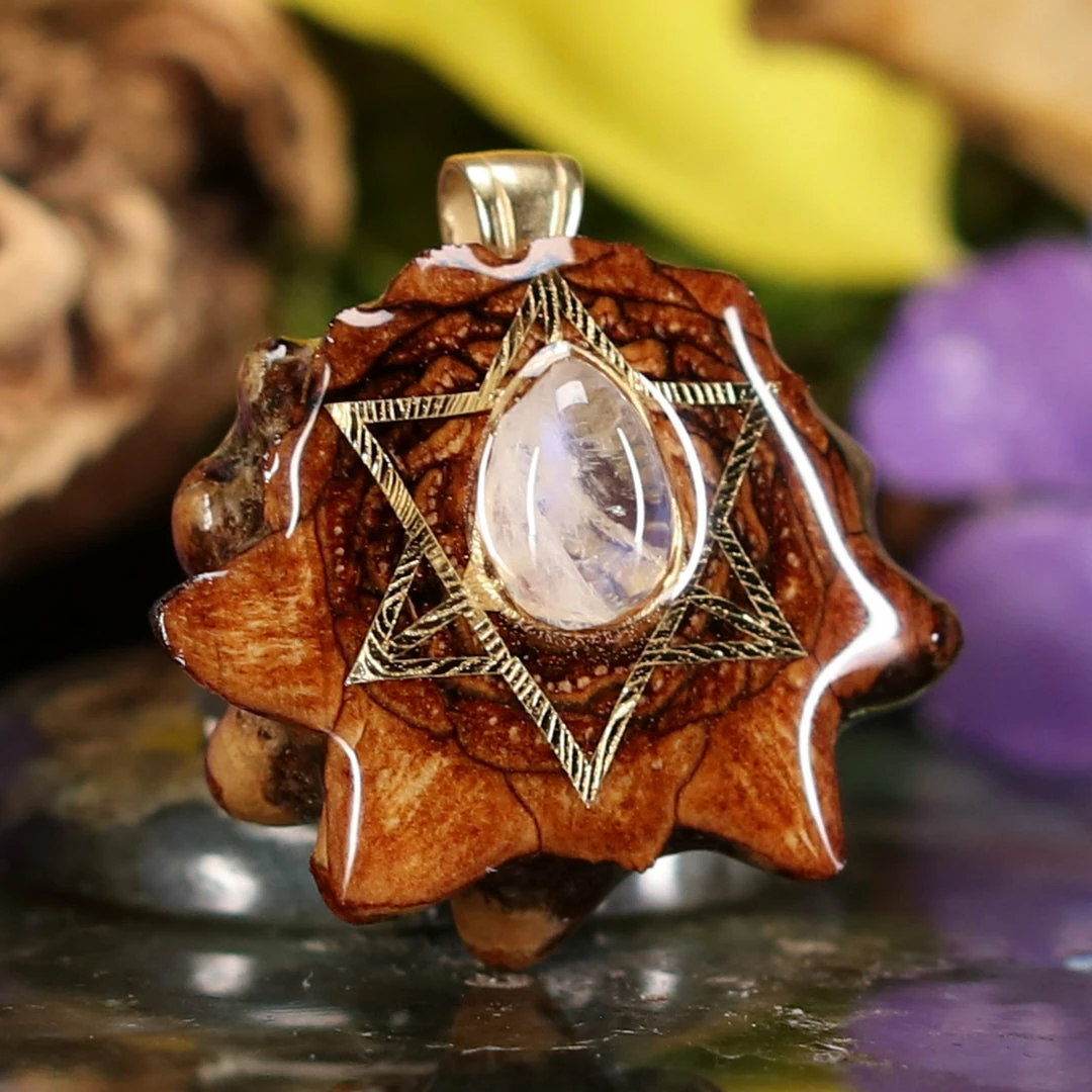 Every pinecone pendant is an elegant gift from Mother Nature — unveiling the ornate Sacred Geometry hidden at the center of one of the world’s densest Pinecones. Because only one cross-section is taken from the “heart” of each Cone, every pendant is absolutely unique, and truly one-of-a-kind.