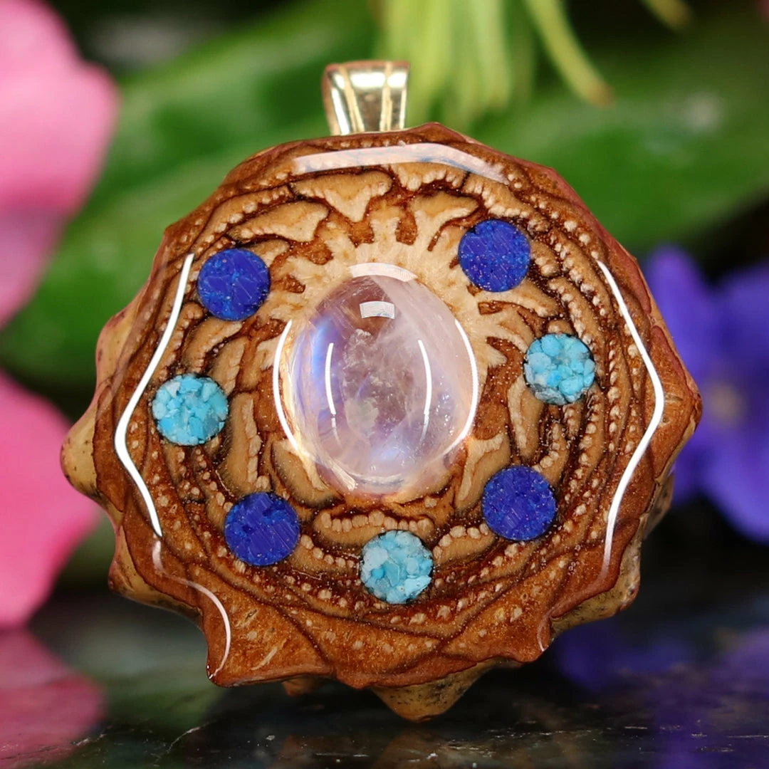 Every pinecone pendant is an elegant gift from Mother Nature — unveiling the ornate Sacred Geometry hidden at the center of one of the world’s densest Pinecones. Because only one cross-section is taken from the “heart” of each Cone, every pendant is absolutely unique, and truly one-of-a-kind.