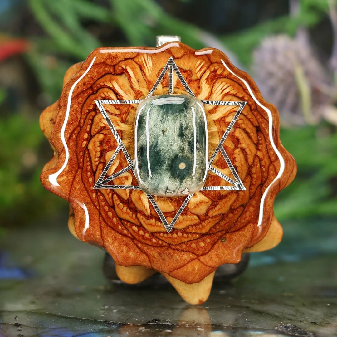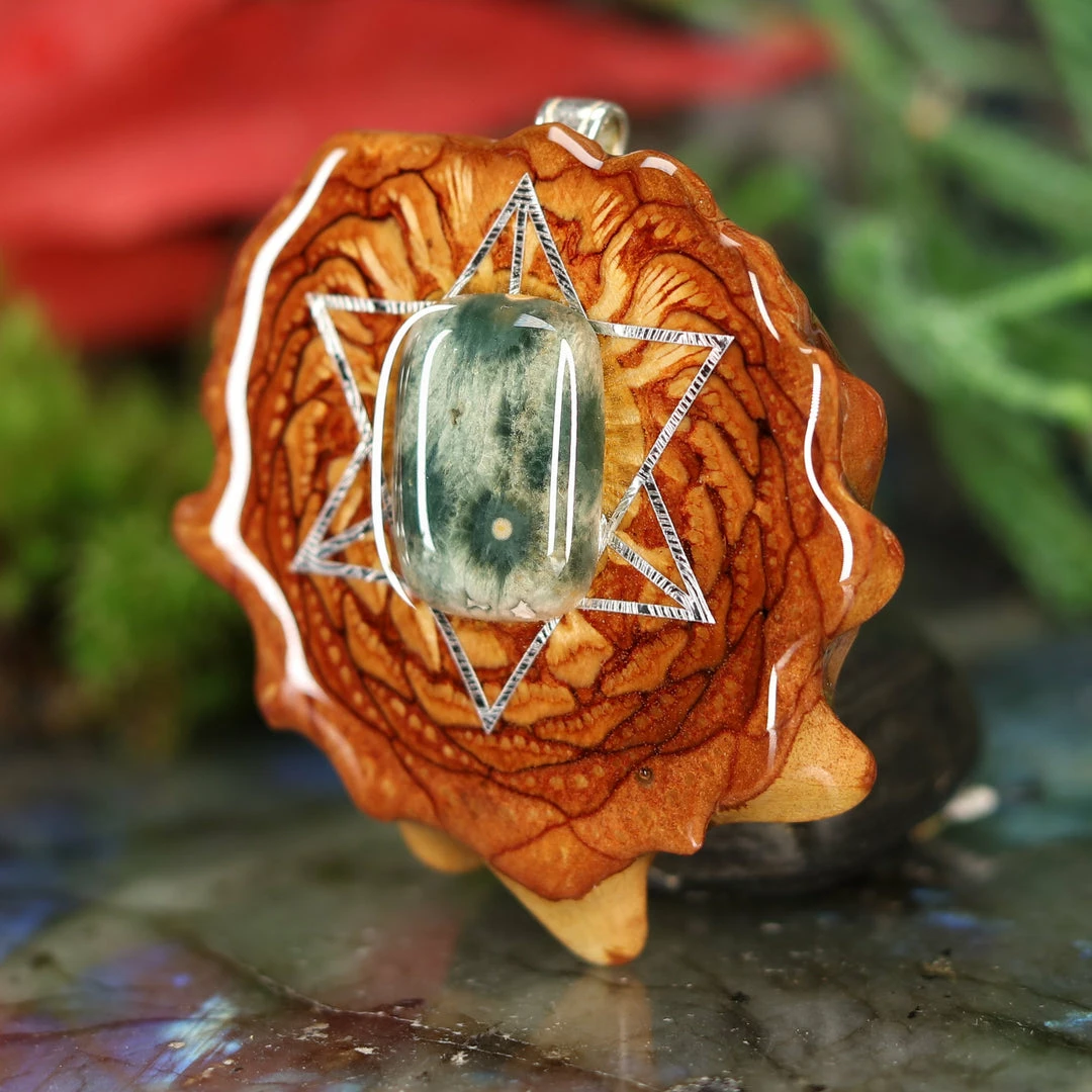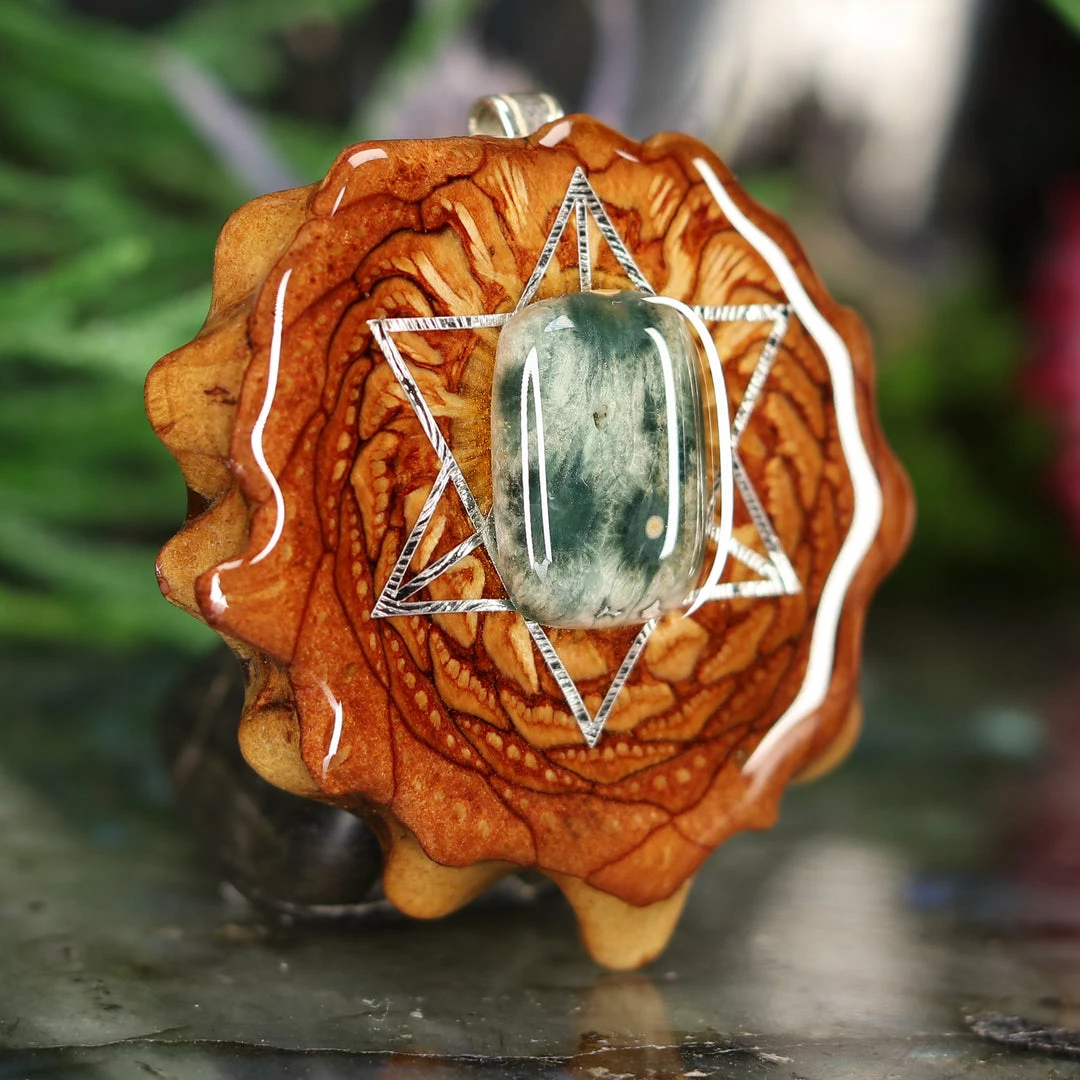 Every pinecone pendant is an elegant gift from Mother Nature — unveiling the ornate Sacred Geometry hidden at the center of one of the world’s densest Pinecones. Because only one cross-section is taken from the “heart” of each Cone, every pendant is absolutely unique, and truly one-of-a-kind.
