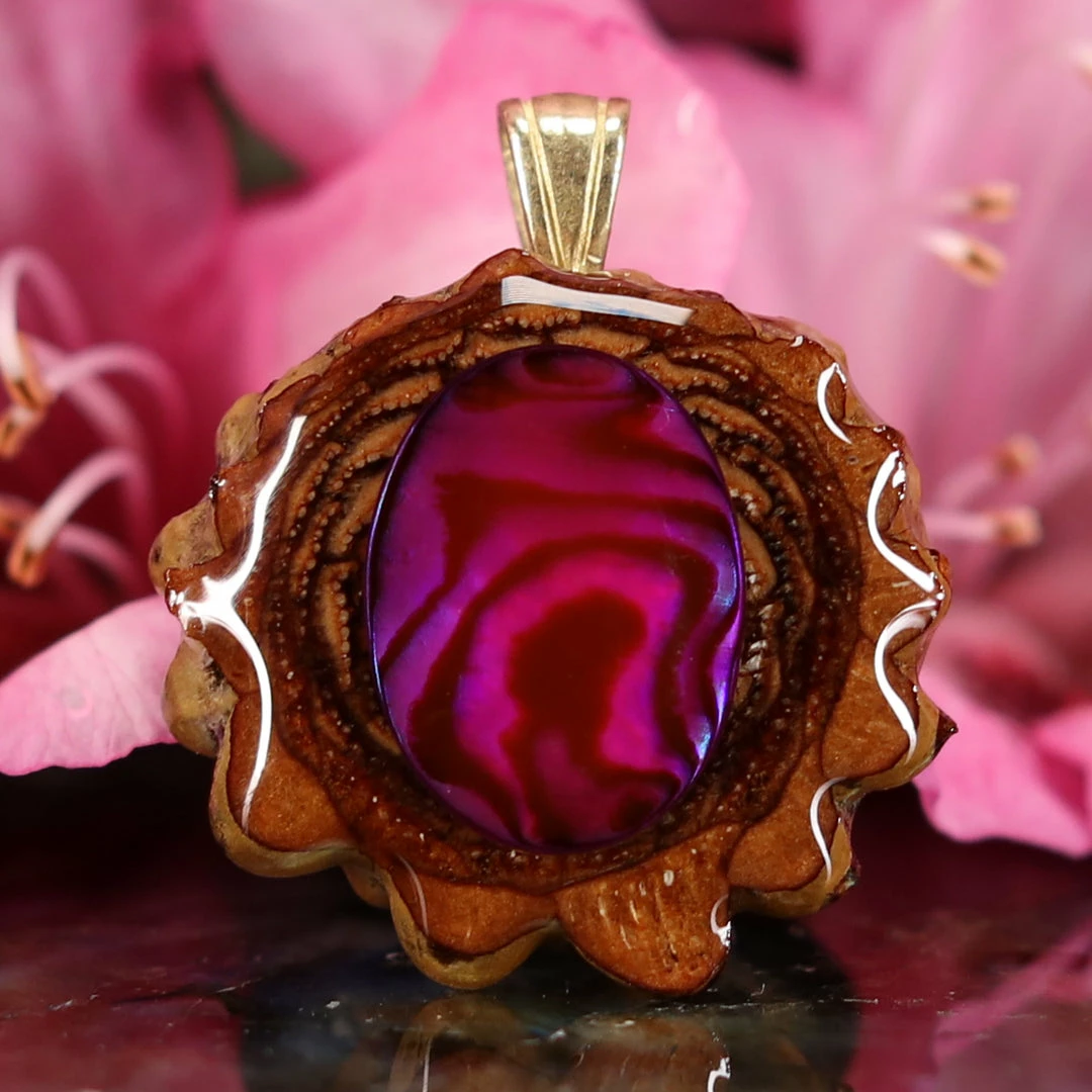 Every pinecone pendant is an elegant gift from Mother Nature — unveiling the ornate Sacred Geometry hidden at the center of one of the world’s densest Pinecones. Because only one cross-section is taken from the “heart” of each Cone, every pendant is absolutely unique, and truly one-of-a-kind.