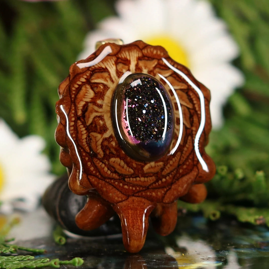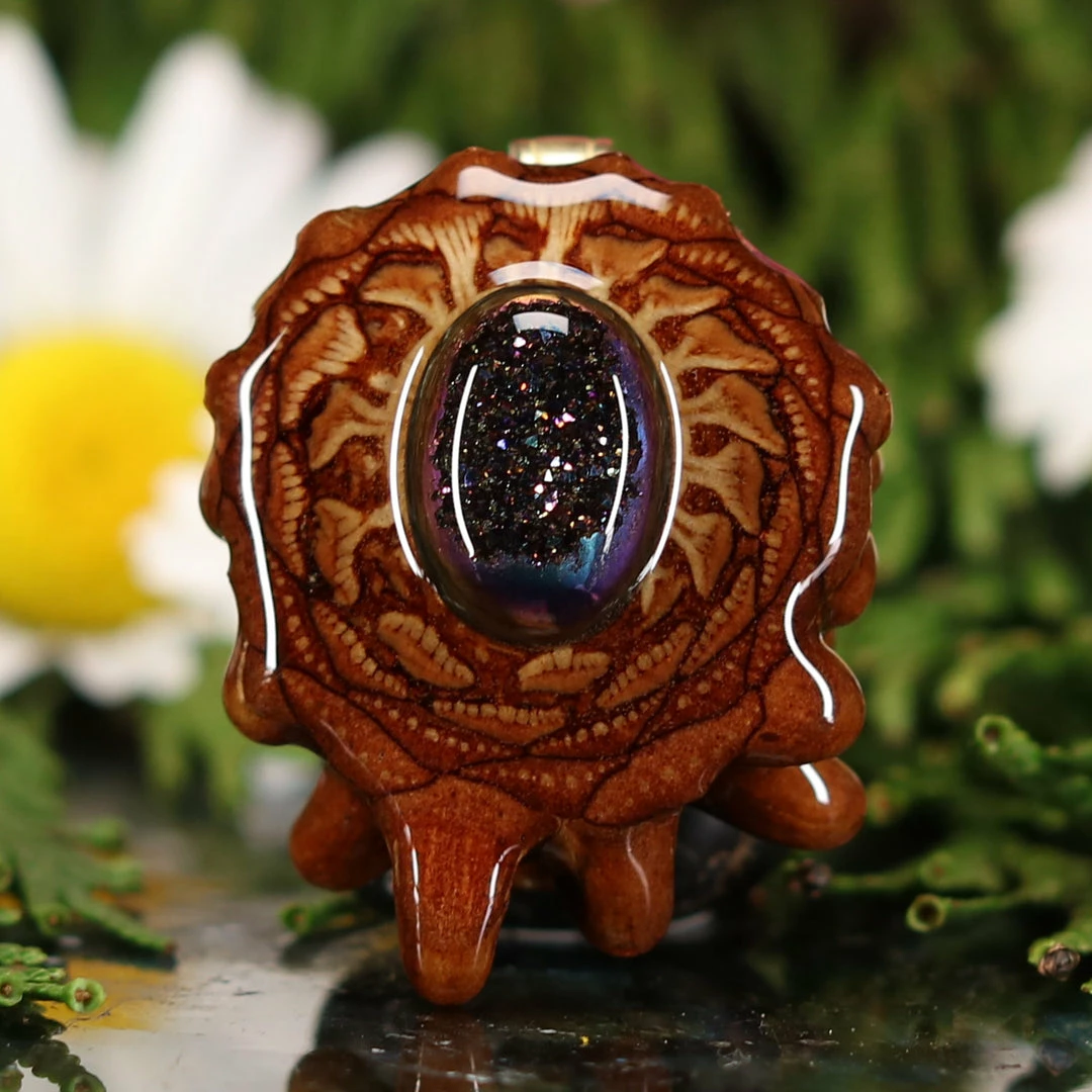 Every pinecone pendant is an elegant gift from Mother Nature — unveiling the ornate Sacred Geometry hidden at the center of one of the world’s densest Pinecones. Because only one cross-section is taken from the “heart” of each Cone, every pendant is absolutely unique, and truly one-of-a-kind.