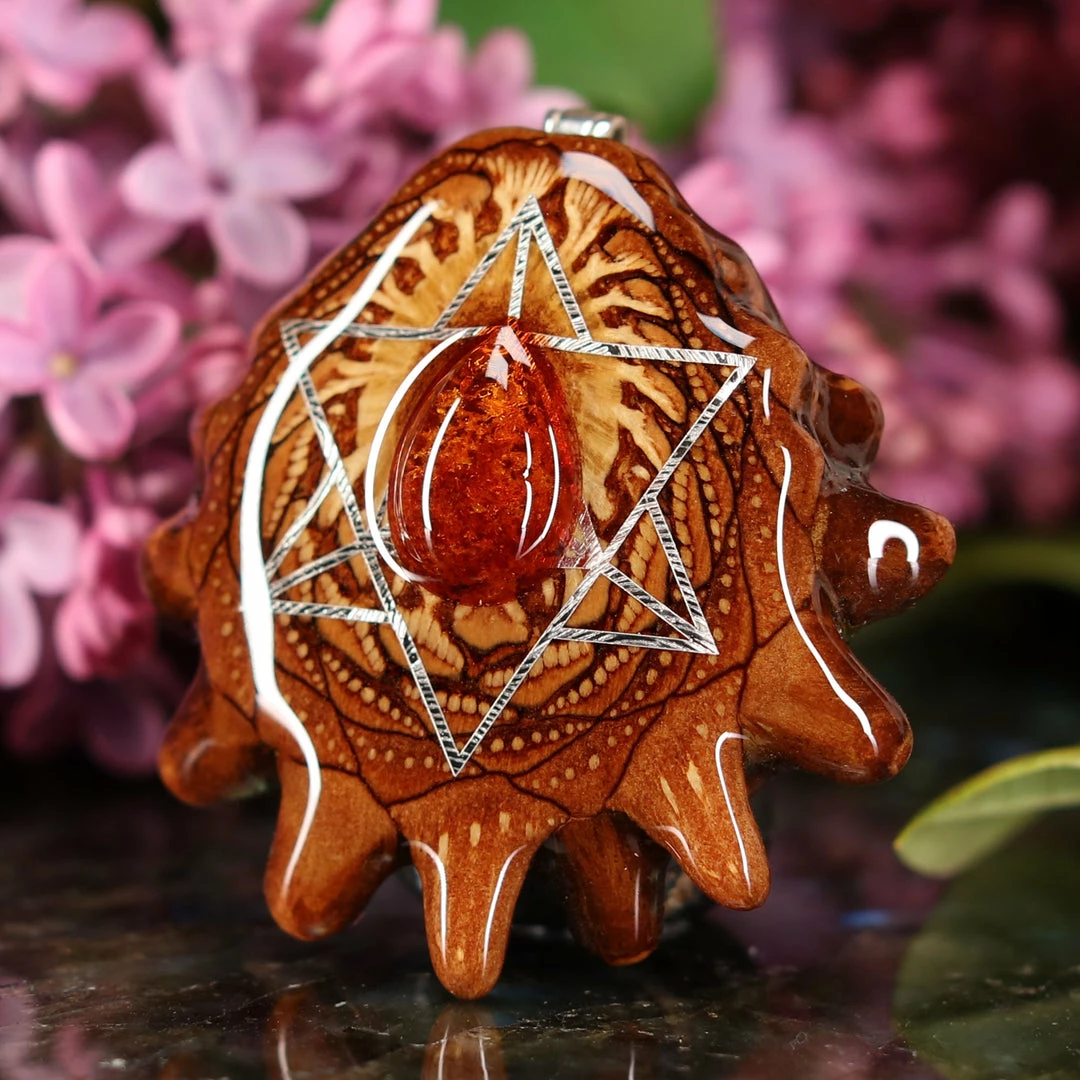 Every pinecone pendant is an elegant gift from Mother Nature — unveiling the ornate Sacred Geometry hidden at the center of one of the world’s densest Pinecones. Because only one cross-section is taken from the “heart” of each Cone, every pendant is absolutely unique, and truly one-of-a-kind.