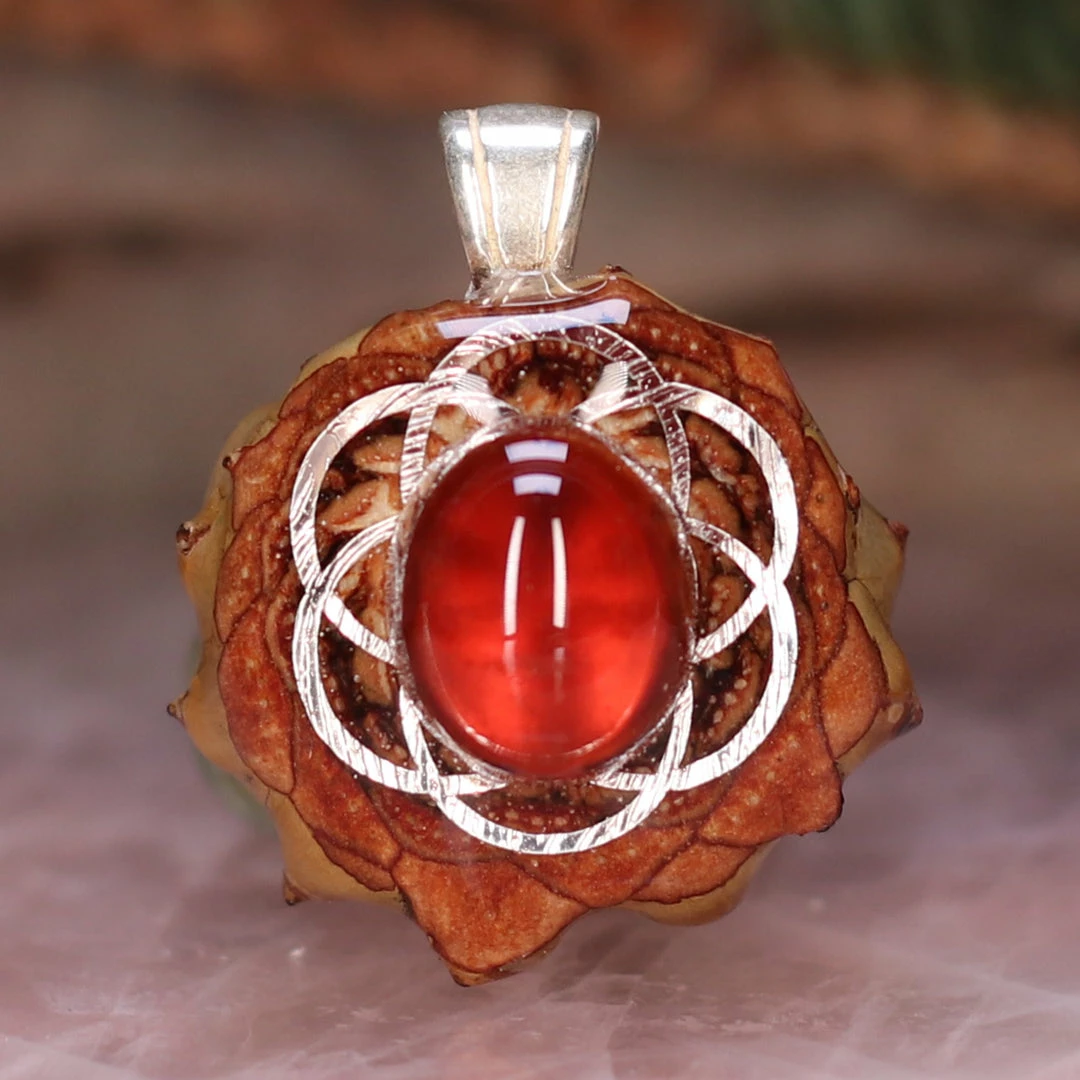 TEP Pendants Red Garnet With Silver Seed Of Life