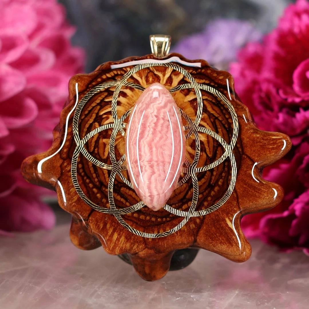 Every pinecone pendant is an elegant gift from Mother Nature — unveiling the ornate Sacred Geometry hidden at the center of one of the world’s densest Pinecones. Because only one cross-section is taken from the “heart” of each Cone, every pendant is absolutely unique, and truly one-of-a-kind.