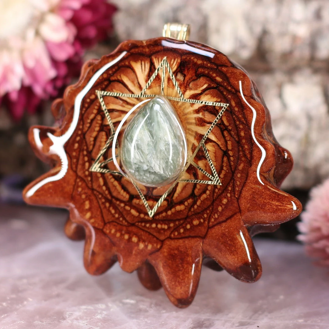 Every pinecone pendant is an elegant gift from Mother Nature — unveiling the ornate Sacred Geometry hidden at the center of one of the world’s densest Pinecones. Because only one cross-section is taken from the “heart” of each Cone, every pendant is absolutely unique, and truly one-of-a-kind.