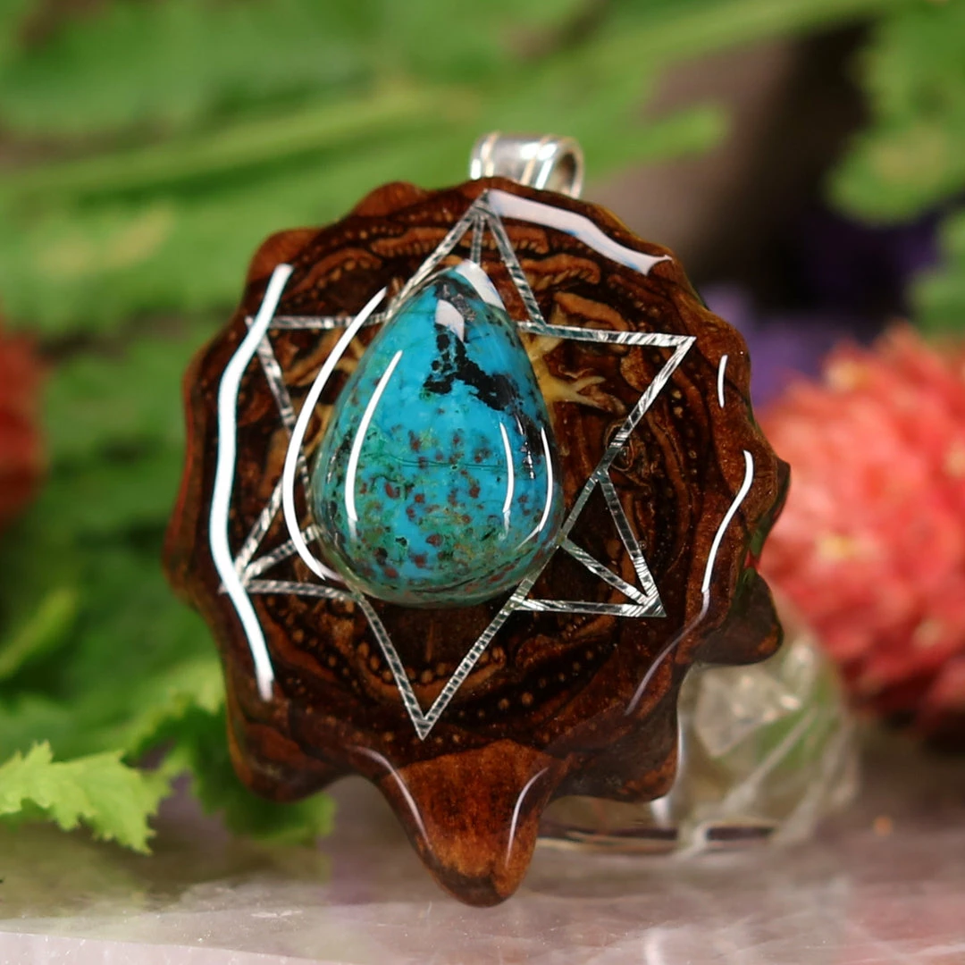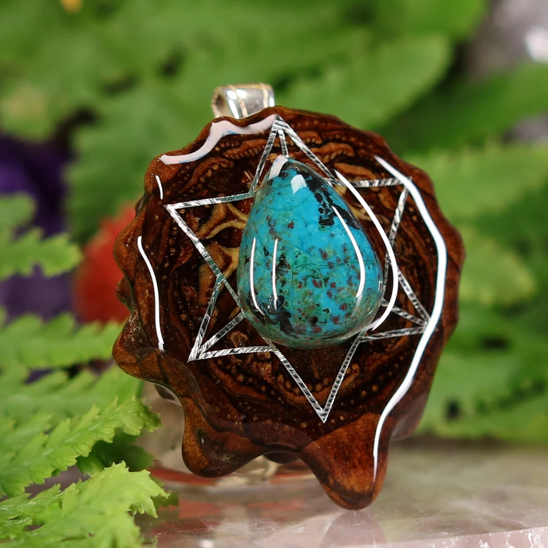 Every pinecone pendant is an elegant gift from Mother Nature — unveiling the ornate Sacred Geometry hidden at the center of one of the world’s densest Pinecones. Because only one cross-section is taken from the “heart” of each Cone, every pendant is absolutely unique, and truly one-of-a-kind.