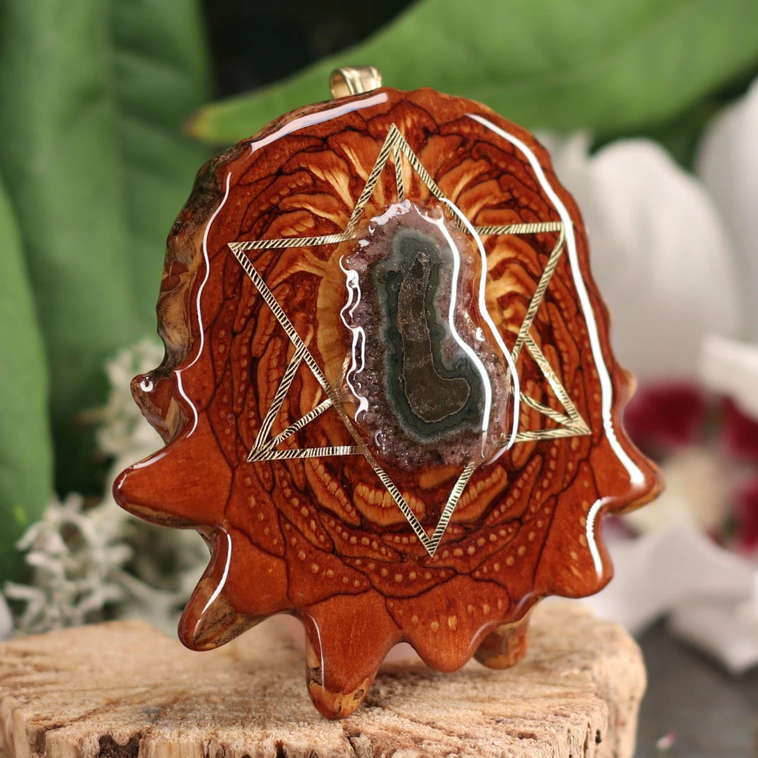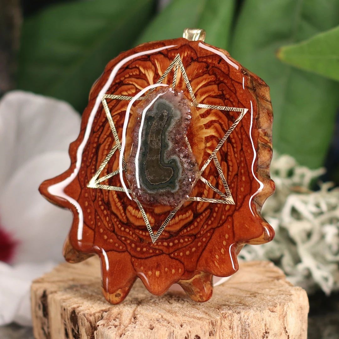 Every pinecone pendant is an elegant gift from Mother Nature — unveiling the ornate Sacred Geometry hidden at the center of one of the world’s densest Pinecones. Because only one cross-section is taken from the “heart” of each Cone, every pendant is absolutely unique, and truly one-of-a-kind.
